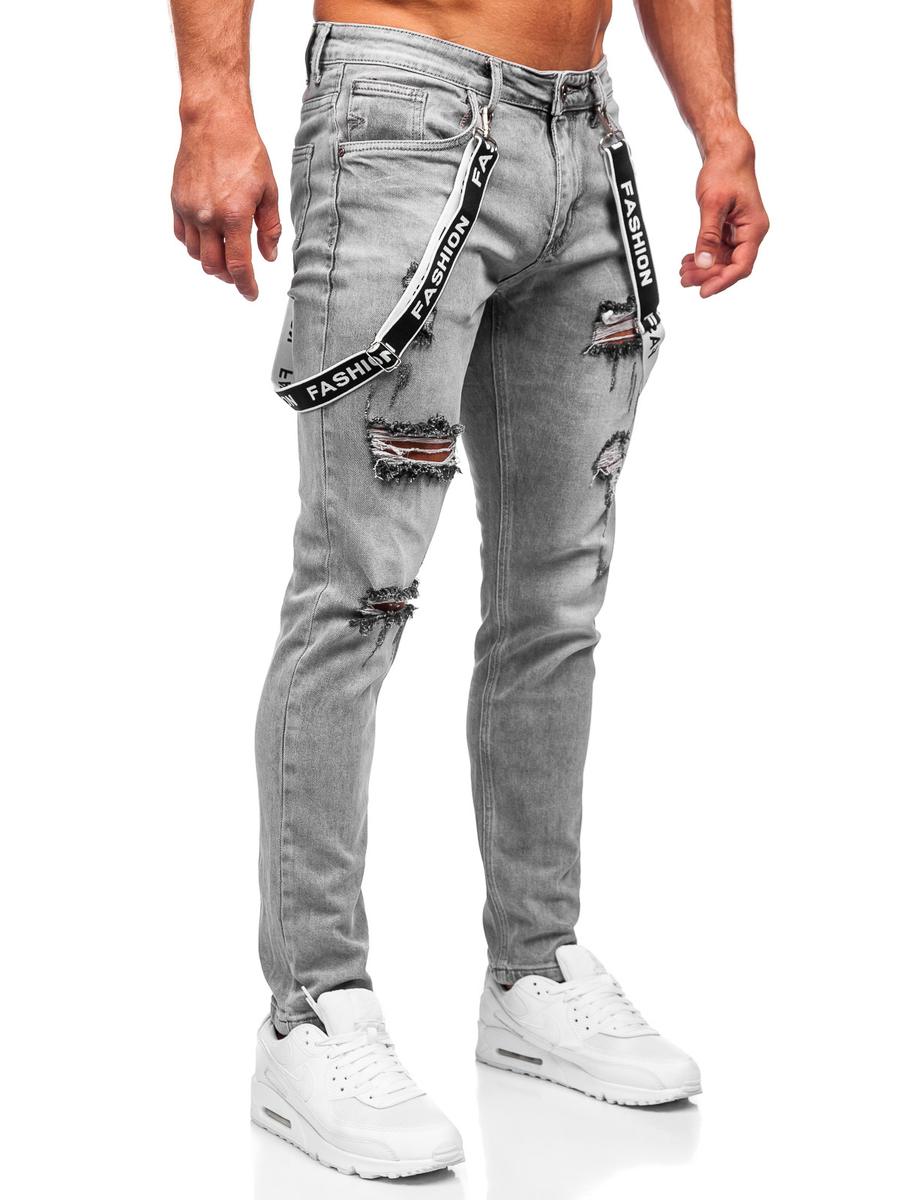 A felhasználók véleménye Szürke slim fit férfi farmernadrág nadrágtartóval Bolf KX952