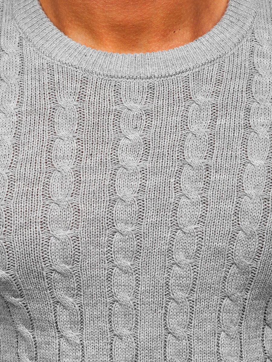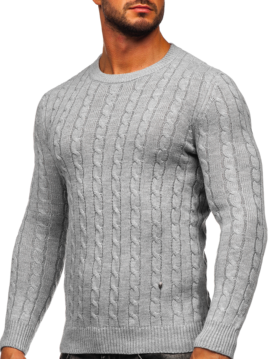 Szürke színű férfi pulóver -Bolf MM6021- egyenes, klasszikus szabású termék. Kerek dekoltázzsál, mely szűkítővel végződik. Az alsó rész és az ujjak is szűkítővel vannak ellátva, ennek köszönhetően a pulóver tökéletesen idomul az alakhoz. Finom, kellemes tapintású anyagból, amely jól idomul az alkathoz. A divatos anyagkötés és a dísz az alsó részen különlegessé teszi a stilizációt. Viseld munkában, iskolában, sétán, vagy baráti találkozásokkor. Klasszikus pulóver, nagyszerűen mutat farmerral és bőrdzsekivel, ideális stilizációt biztosít a baráti találkozásra. Jól párosítható joggerrel és pulcsival, egyúttal létrehozva a laza stilizációt.