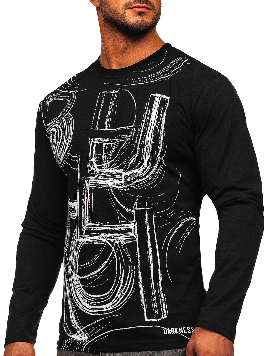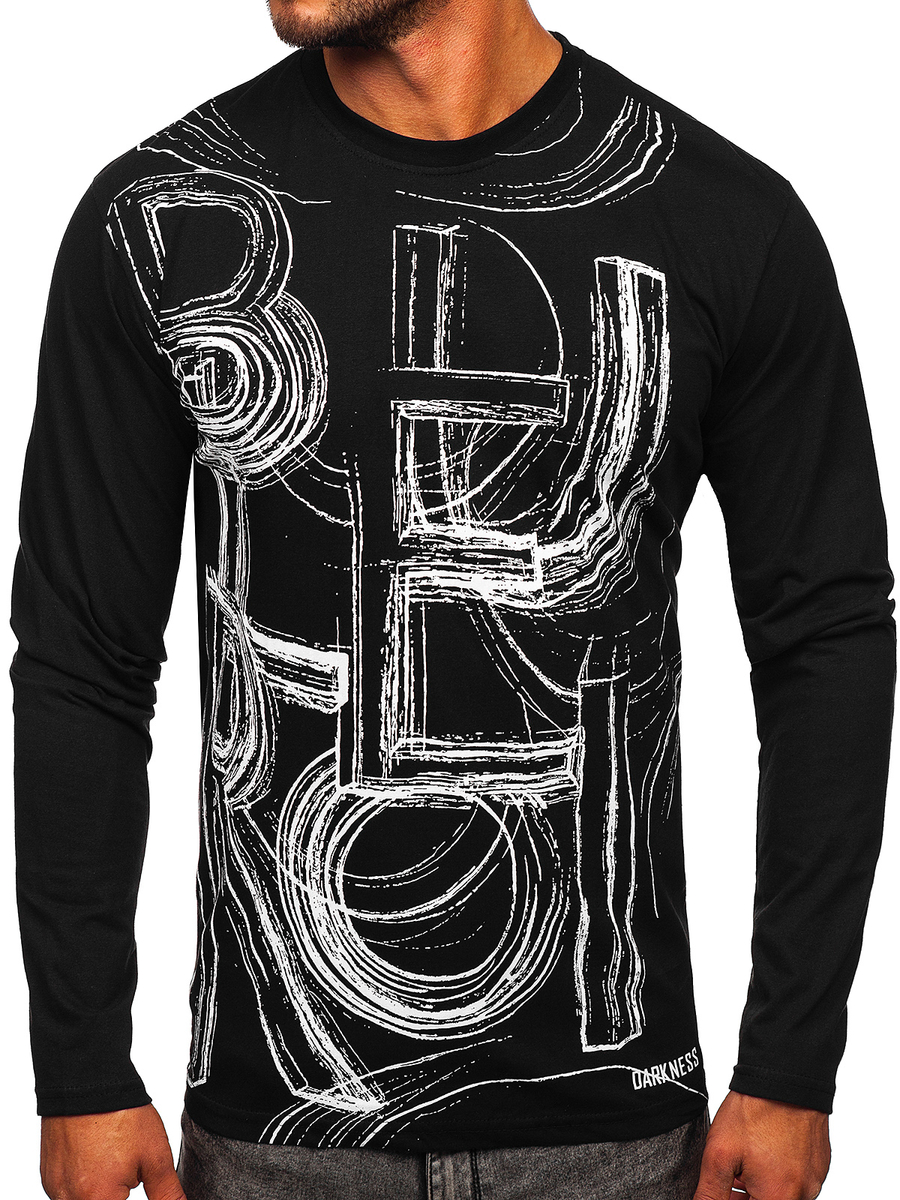 A felhasználók véleménye Mintás férfi hosszú ujjú felső fekete színben Bolf 146743