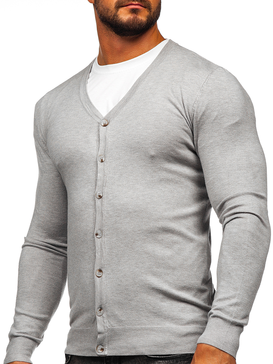 A felhasználók véleménye Nyitható férfi kardigán szürke színben Bolf MM6006