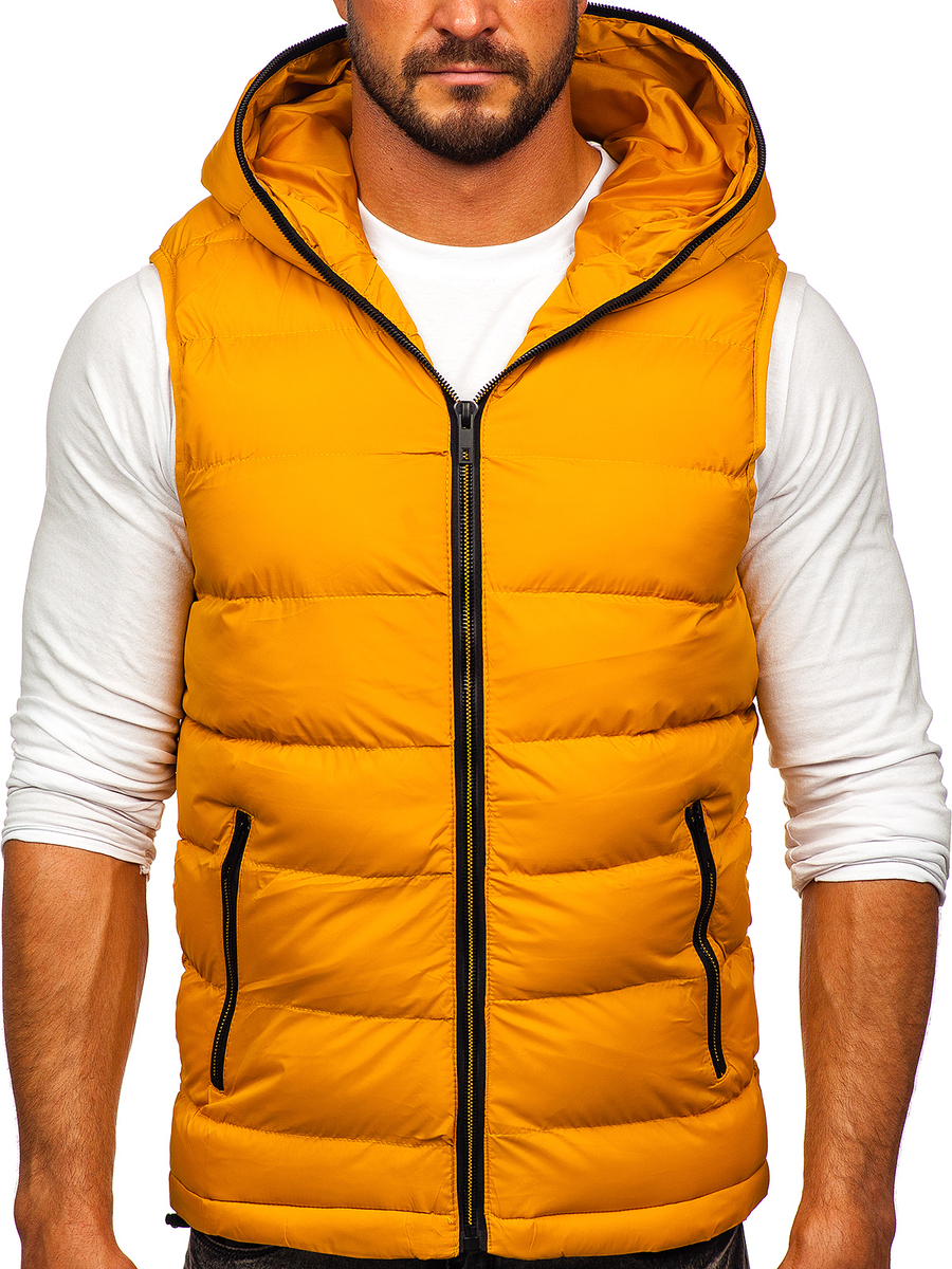 A felhasználók véleménye Vastag steppelt férfi mellény kapucnival camel színben Bolf 7M805