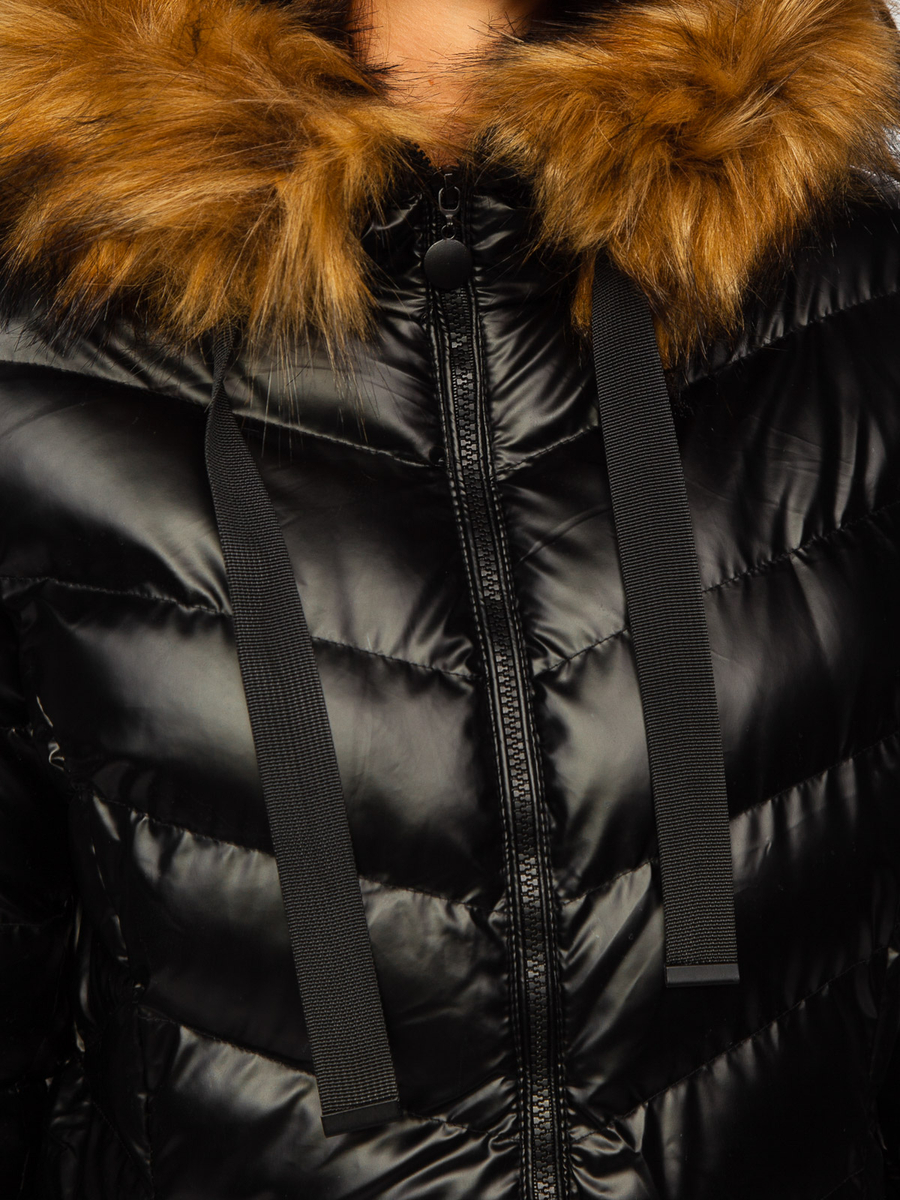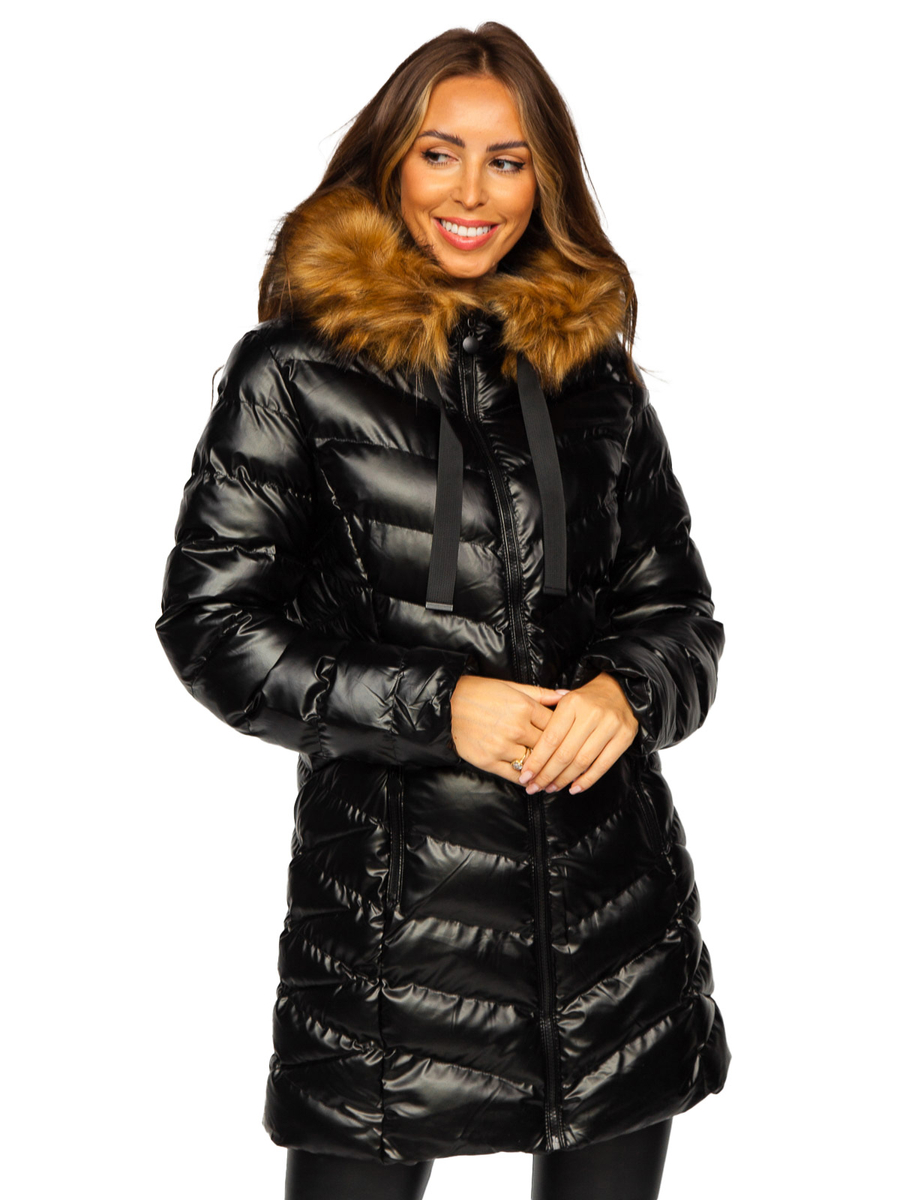 A felhasználók véleménye Hosszú steppelt téli női dzseki kapucnival fekete színben Bolf 5M778