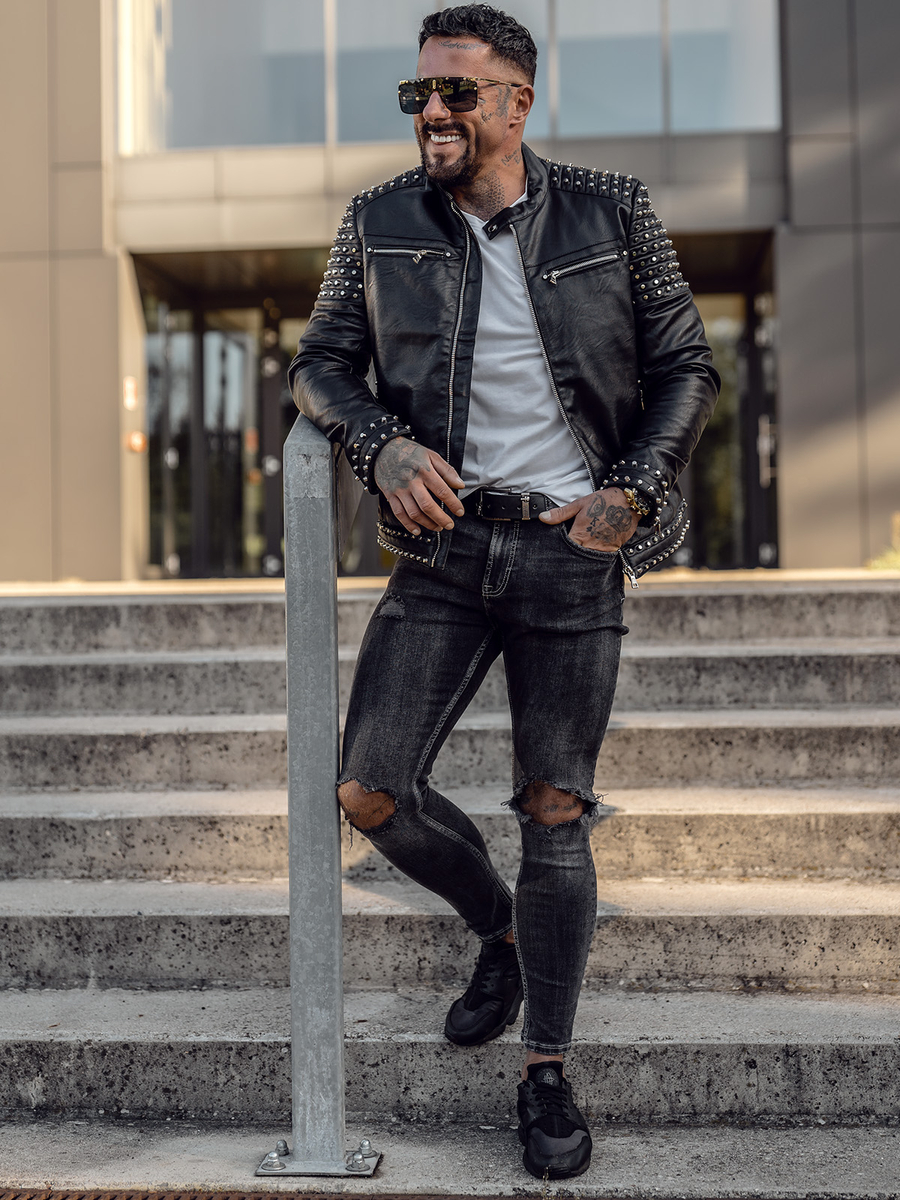 A felhasználók véleménye Férfi bőrdzseki szegecsekkel fekete színben Bolf 11Z8007