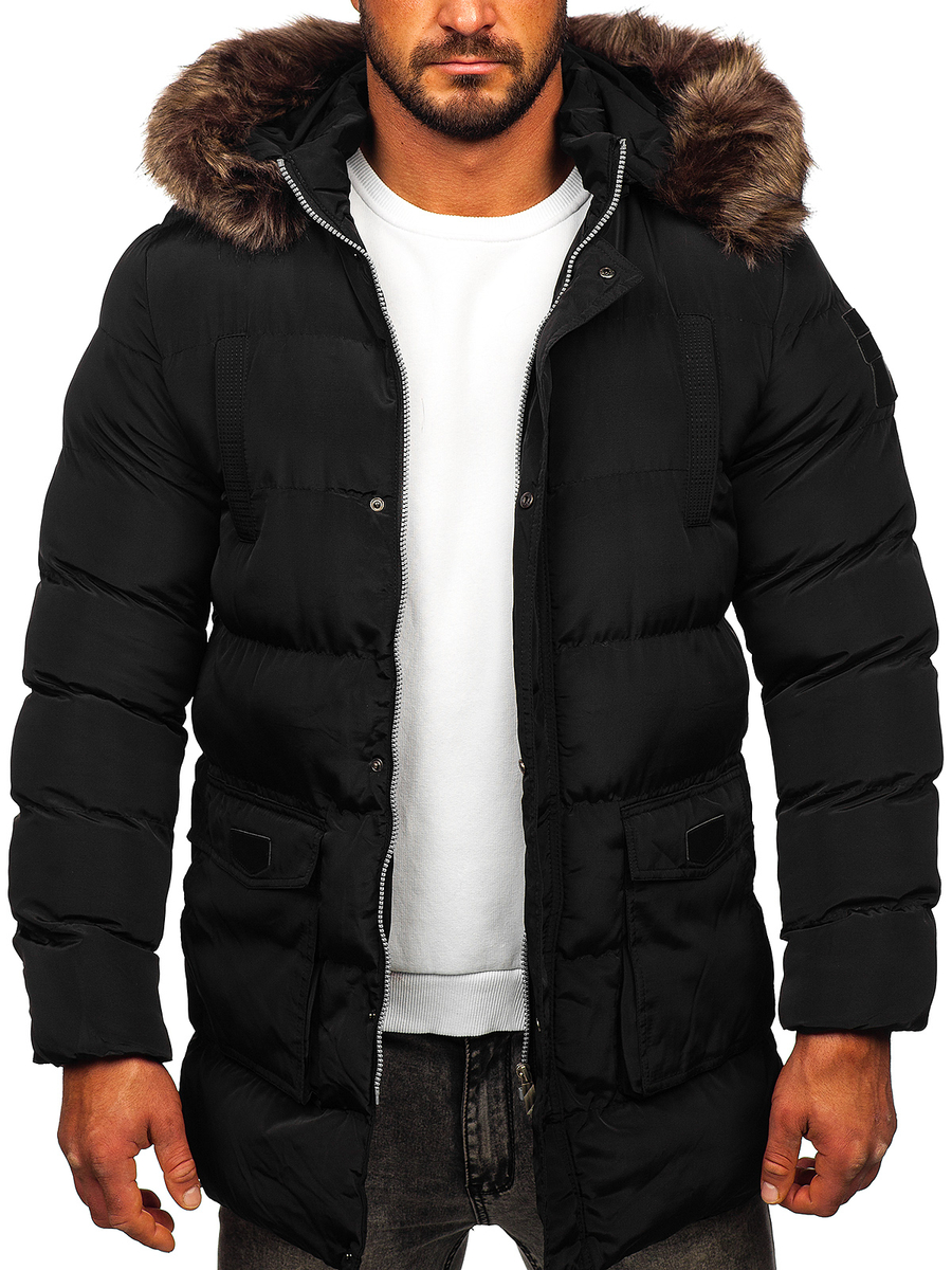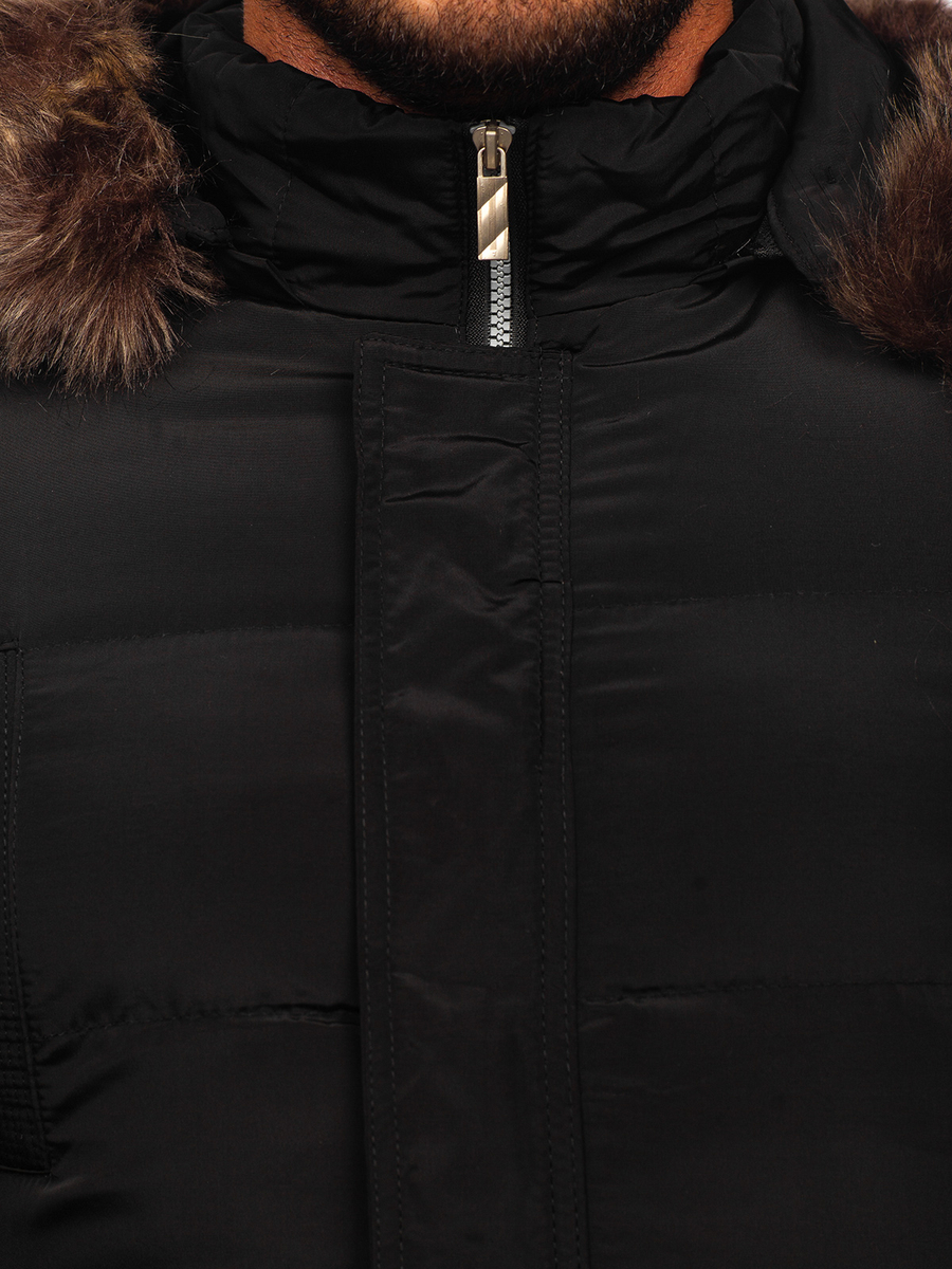 Czarna pikowana kurtka męska zimowa Denley 5M50 jest perfekcyjnym wyborem na sezon zimowy. Zapinana jest klasycznie, na zamek błyskawiczny i napy. Posiada kołnierz typu stójka oraz regulowany odpinany kaptur, dzięki czemu ochronisz się przed wiatrem oraz deszczem. Dodatkowo kaptur posiada modne, odpinane futerko. Ozdobna aplikacja na rękawie i zamki na dole kurtki nadają jej wyjątkowego, wyróżniającego się charakteru. Dopasowany fason sprawia, że każdy będzie wyglądać w niej wyjątkowo korzystnie. Kurtka posiada praktyczne kieszenie boczne zapinane na nap oraz wewnętrzną kieszeń bez zapięcia. Wykonana jest z wysokiej jakości materiałów, dzięki czemu jest bardzo wygodna i miła w dotyku. Stworzy idealne połączenie zarówno z jeansami, joggerami jak i chinosami.