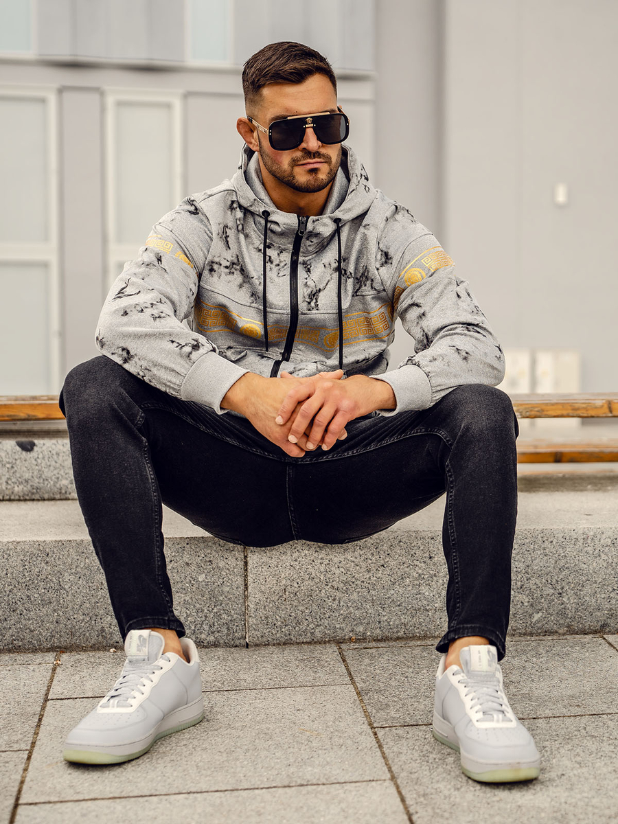 A felhasználók véleménye Nyitható szürke színű férfi pulcsi kapucnival Bolf 27B8125