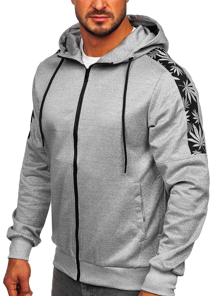 A szürke színű, nyitható férfi pulcsi kapucnival -Bolf 27B8120- évszaktól függetlenül tökéletesen megállja a helyét. Cipzározható, klasszikus szabású pulcsi, praktikus, állítható kapucnival. A pulcsi alsó része és az ujjai passzéval vannak ellátva, ennek köszönhetően melegen tart és védelmet nyújt a szél ellen a hűvösebb napokon. Az ujjakon található dizájnos nyomat divatossá teszi a pulcsit. Pulcsi, két zár nélküli, oldalsó zsebbel Nagyon kellemes tapintású melegítőanyagból készült. Hétköznapokon ugyanúgy megállja a helyét, mint sportolás közben. Melegítőnadrággal klasszikus, sportos kinézetet biztosítasz. A pulcsi a hétköznapokon is nagyszerűen párosítható farmerral, pólóval és bőrdzsekivel.