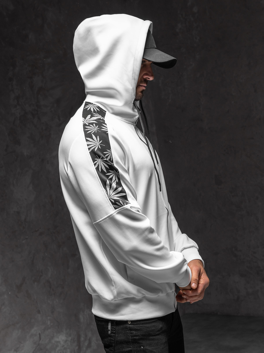 A fehér színű, nyitható férfi pulcsi kapucnival -Bolf 27B8120- évszaktól függetlenül tökéletesen megállja a helyét! Cipzározható, klasszikus szabású pulcsi, praktikus, állítható kapucnival. A pulcsi alsó része és az ujjai passzéval vannak ellátva, ennek köszönhetően melegen tart és védelmet nyújt a szél ellen a hűvösebb napokon. Az ujjakon található dizájnos nyomat divatossá teszi a pulcsit. Pulcsi, két zár nélküli, oldalsó zsebbel Nagyon kellemes tapintású melegítőanyagból készült. Hétköznapokon ugyanúgy megállja a helyét, mint sportolás közben. Melegítőnadrággal klasszikus, sportos kinézetet biztosítasz. A pulcsi a hétköznapokon is nagyszerűen párosítható farmerral, pólóval és bőrdzsekivel.