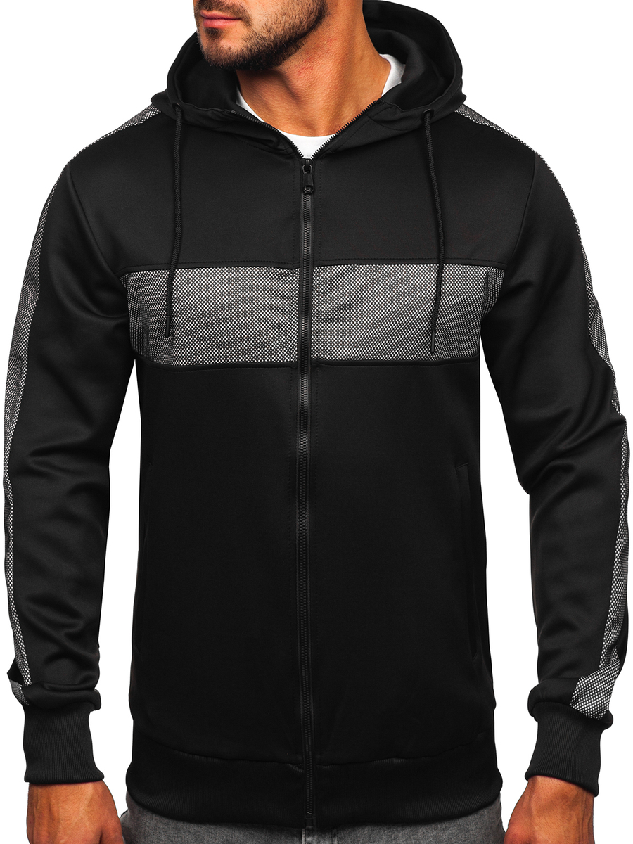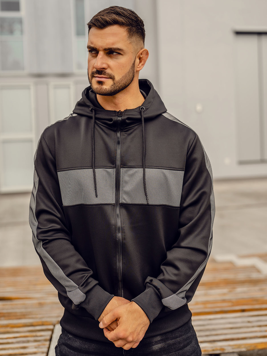 A fekete színű, nyitható férfi pulcsi kapucnival -Bolf 27B8121- évszaktól függetlenül tökéletesen megállja a helyét! Cipzározható, klasszikus szabású pulcsi, praktikus, állítható kapucnival. A pulcsi alsó része és az ujjai passzéval vannak ellátva, ennek köszönhetően melegen tart és védelmet nyújt a szél ellen a hűvösebb napokon. Az elején és az ujjakon található dizájnos nyomat divatossá teszi a pulcsit. Pulcsi, két zár nélküli, oldalsó zsebbel Nagyon kellemes tapintású melegítőanyagból készült. Hétköznapokon ugyanúgy megállja a helyét, mint sportolás közben. Melegítőnadrággal klasszikus, sportos kinézetet biztosítasz. A pulcsi a hétköznapokon is nagyszerűen párosítható farmerral, pólóval és bőrdzsekivel.
