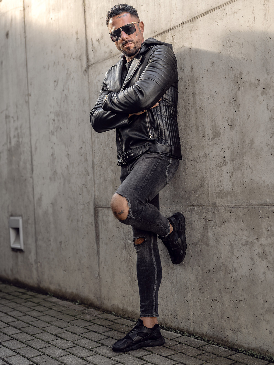 Fekete színű, motoros férfi bőrdzseki kapucnival -Bolf 11Z8005- egy igazi klasszikus, modern kiadásban. Ökobőrből készült cipzározható dzseki. A motoros dzseki mega divatos anyagok összevarrással készül, amelyek megkülönböztetik a többi ajánlattól a kategóriájában! Az alsó rész dekoratív zárral állítható. A dzseki pulcsit imitáló kapucnival rendelkezik, mely levehető. Két praktikus, cipzározható külső zsebbel, egy mellzsebbel és egy belső zsebbel rendelkezik. Az alkalmi stílusú dzseki lehetővé teszi számos egyedi stilizáció létrehozását. A klasszikus stílust választod? A motoros dzsekidet farmerral és pólóval párosítsd!