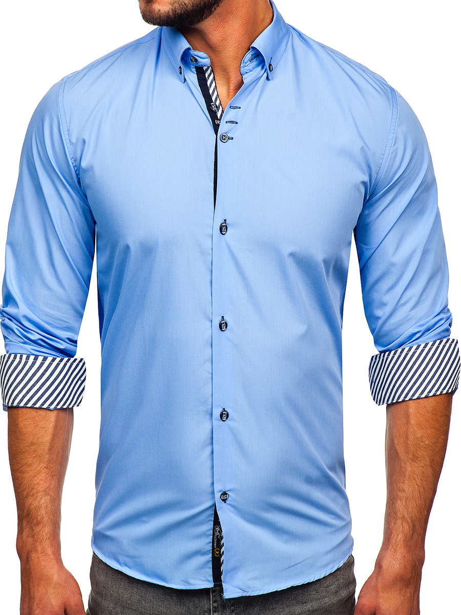 Kék színű, elegáns férfiing a Bolf kollekciójából. Könnyű, tökéletesen igazodik a férfi alakhoz. A hosszú ujjú slim fit ing erősen feldobja a lookot farmerral. A fehér ing nagyon elegánsan mutat chinó nadrággal és zakóval.