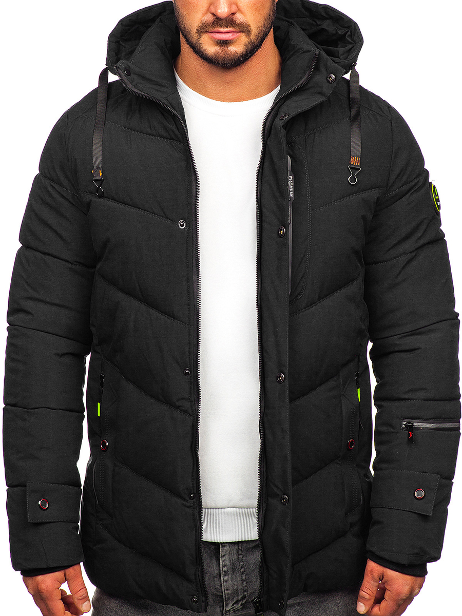 Fekete színű, steppelt, téli férfi dzseki -Bolf 22M55- tökéletes választás a téli napokra. Meleg, téli dzseki levehető, állítható, patentos kapucnival. Cipzározható és patentos dzseki. Mellzsebbel és oldalsó cipzározható zsebekkel rendelkezik, amelyekben biztonságosan tárolhatod a telefont, a pénztárcát vagy a kesztyűt. Ezen felül még egy kis cipzározható belső zseb található. Az ujjak szűkítővel végződnek, továbbá állítható tépőzárral. Steppelt dzseki, mely nagyszerűen mutat hétköznapi stilizációkban. Szeretnél kitűnni? A steppelt dzsekihez válaszd a divatos farmernadrágot és melegítőfelsőt dizájnos nyomattal!