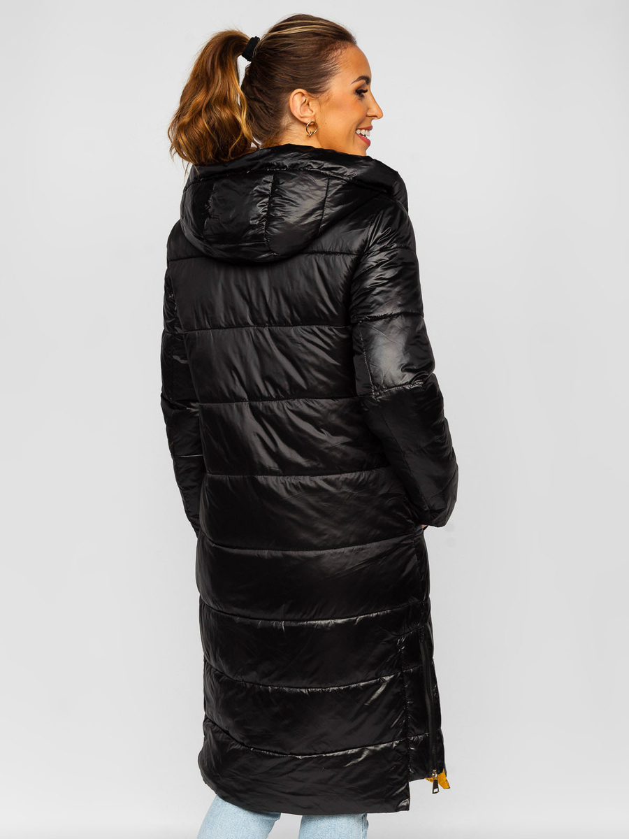 A felhasználók véleménye Hosszú steppelt téli női dzseki kapucnival fekete színben Bolf J9063