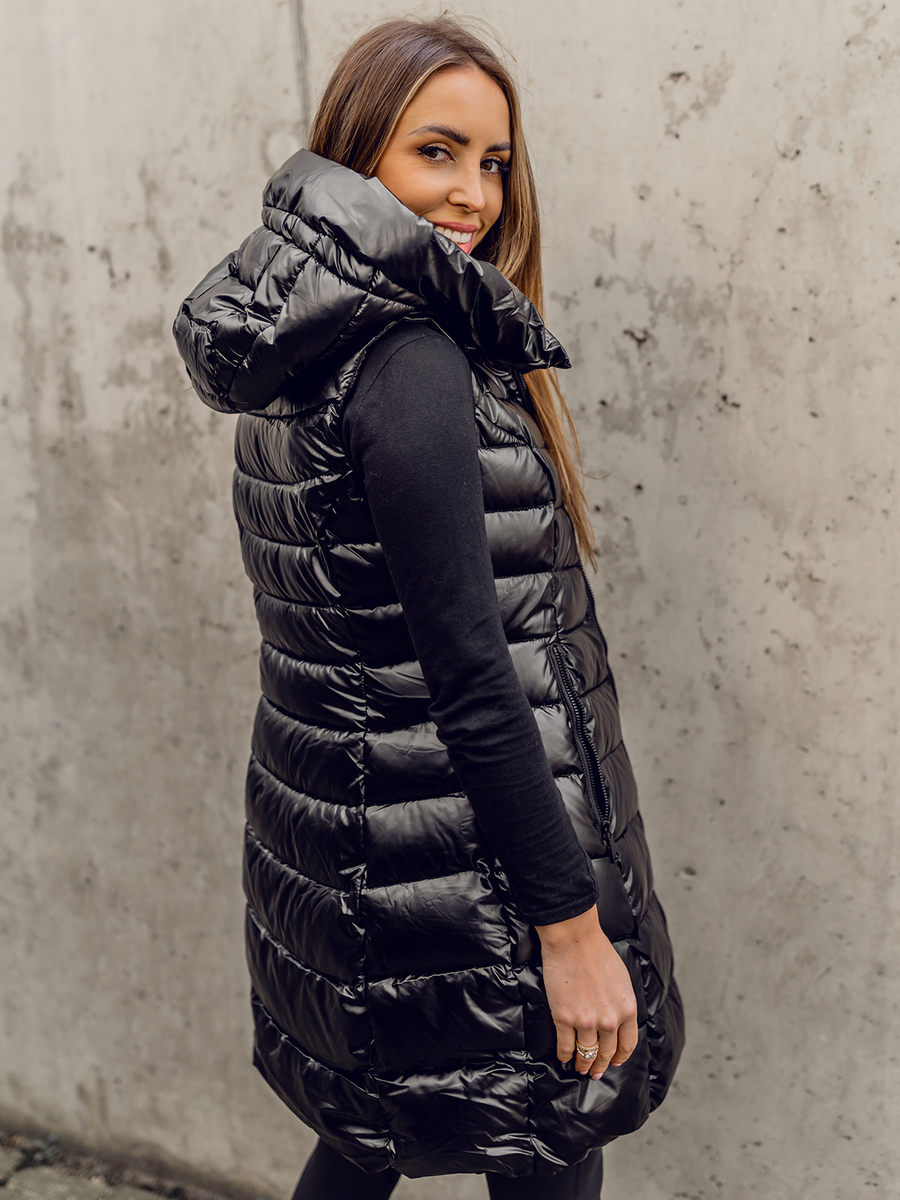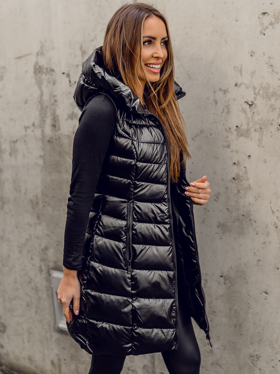 A felhasználók véleménye Fekete színű hosszú steppelt női mellény Bolf DK103