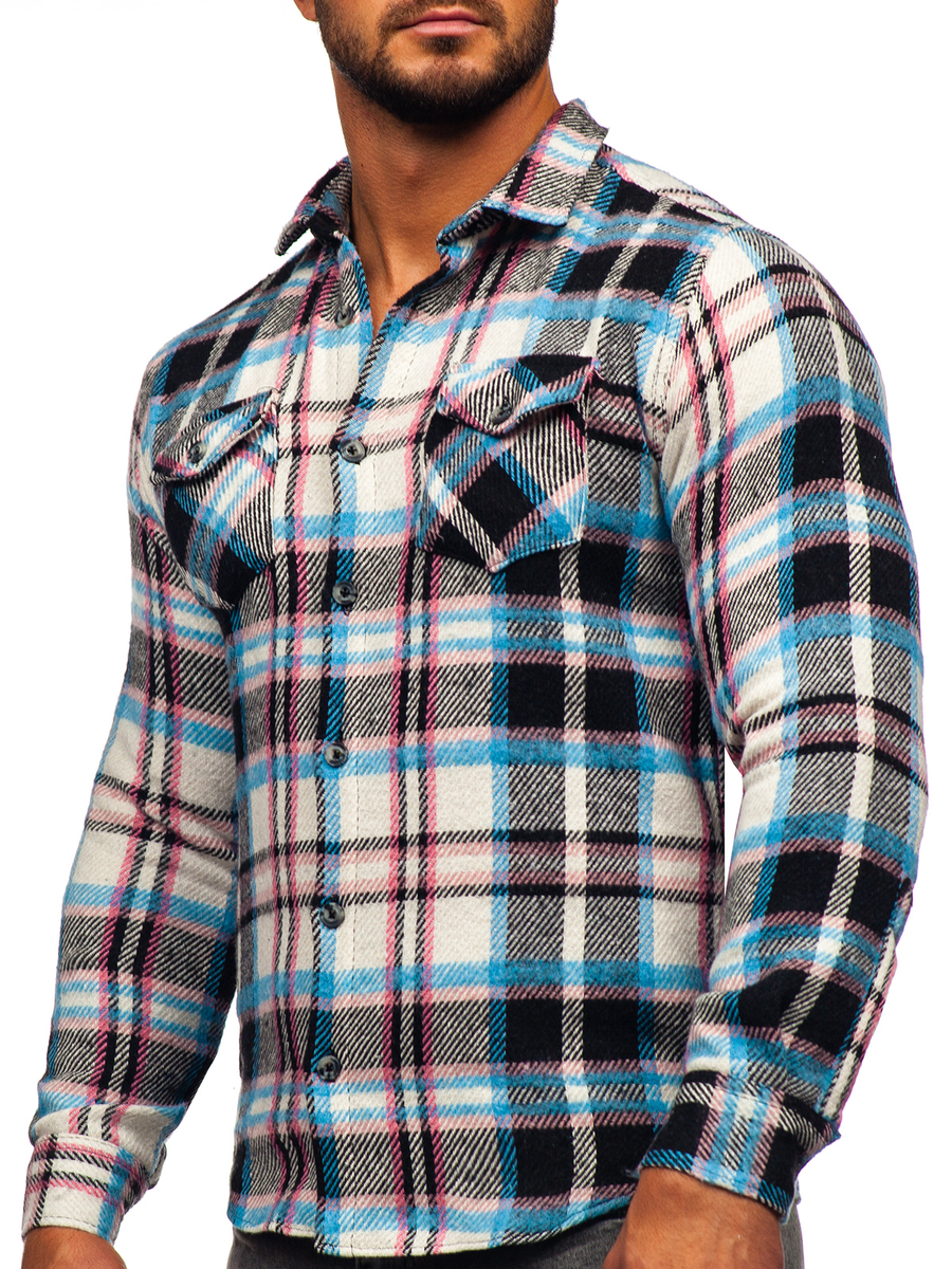 Kék-rózsaszín színű, kockás, hosszú ujjú férfi flaneling -Bolf 22704 - nagyszerű kiegészítése minden elegáns férfi ruhásszekrénynek. Hosszú ujjú, gombolható ing "hai" típusú gallérral. A vásárlóink által kedvelt regular fit fazon, kerekített alsó résszel, jól illeszkedik az alakhoz. Állítható, egysoros, egy gombos mandzsettával. Tökéletes egy baráti kiruccanásra a klubba, vagy akár családi ebédek alkalmával. Az elegáns ing, egy abszolút must have! Elegáns kinézetet biztosít chinóval és zakóval. Casual viselethez válassz egyfarmert és egy bőrdzsekit.