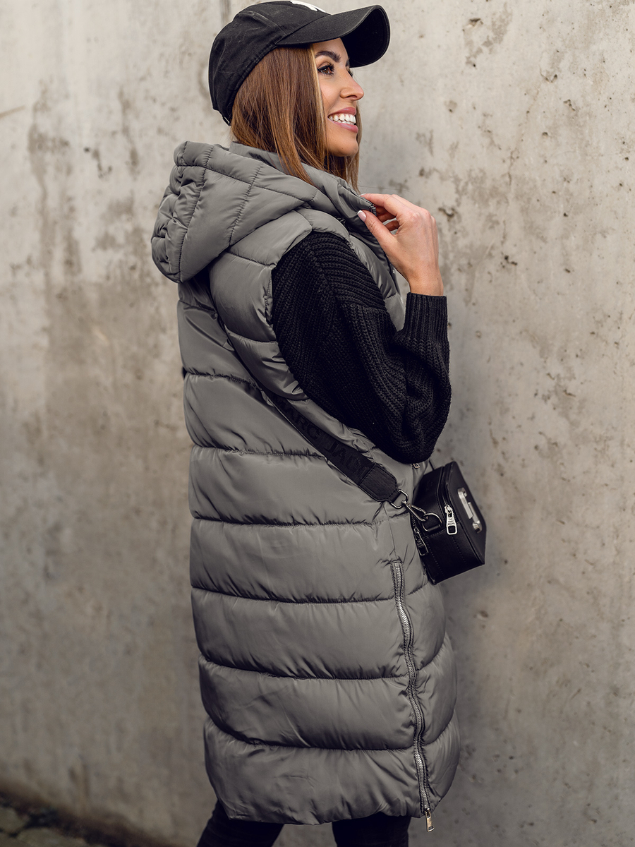 A felhasználók véleménye Szürke színű hosszú steppelt női mellény Bolf 81261