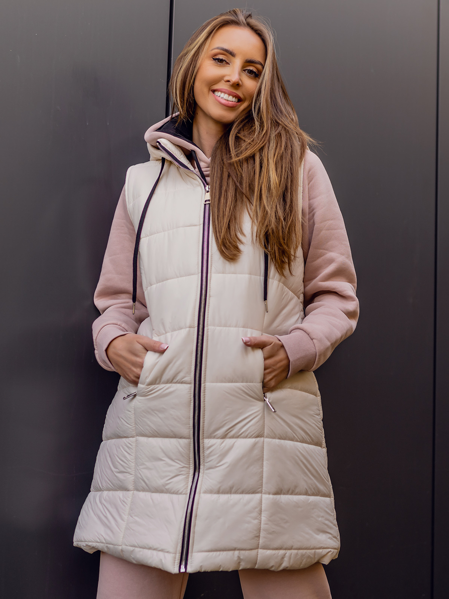 A felhasználók véleménye Ecrü színű hosszú steppelt női mellény Bolf 82019