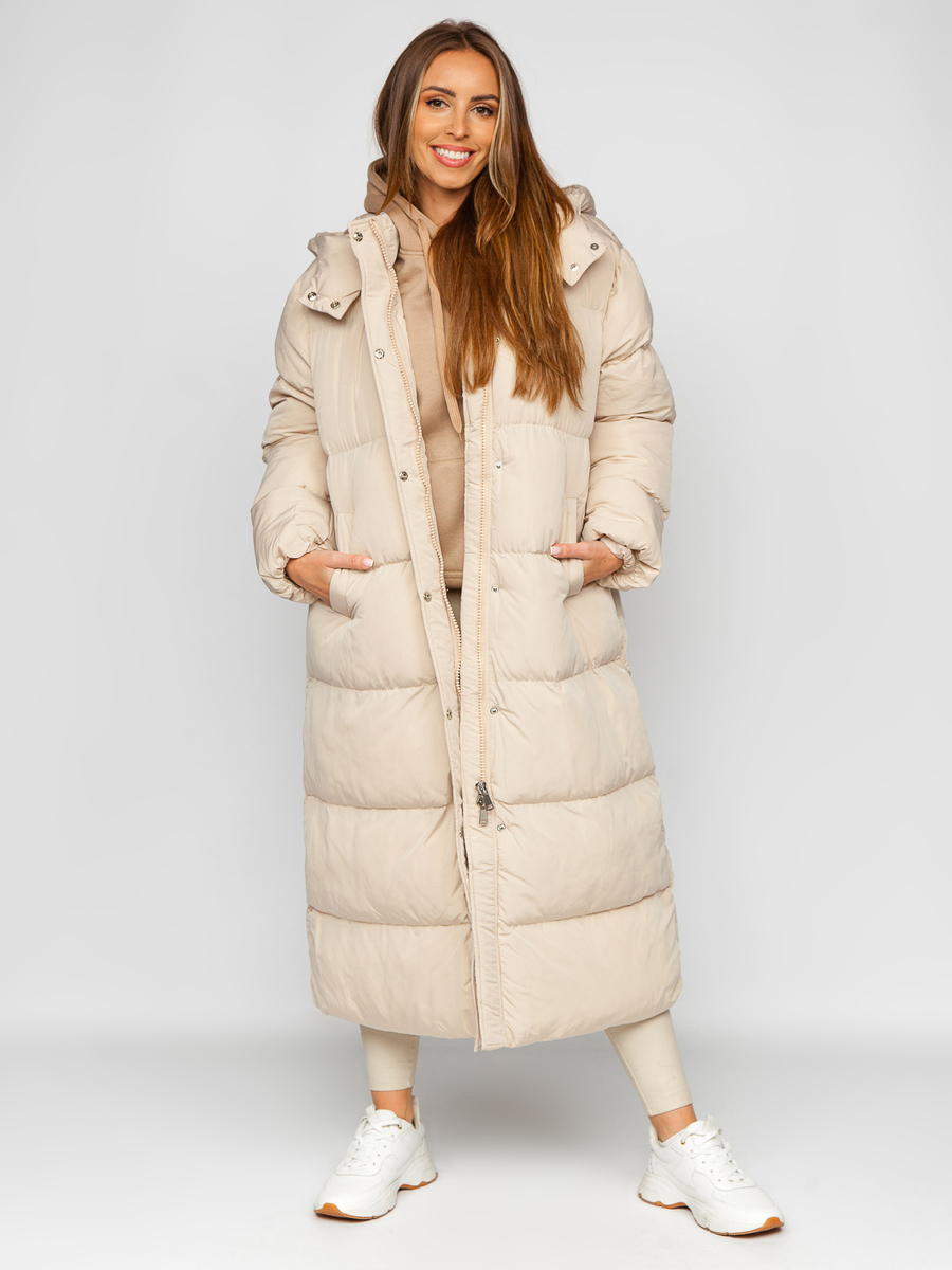 A felhasználók véleménye Bézs színű női hosszú steppelt téli kabát kapucnival Bolf R6702