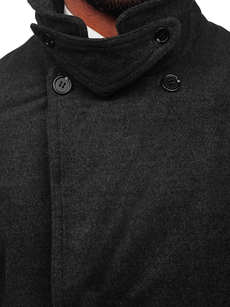 A felhasználók véleménye Téli kétsoros férfi kabát magas gallérral grafit színben Bolf 1048