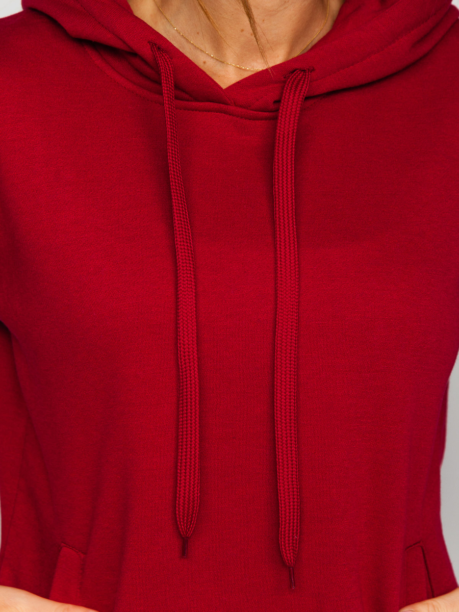 A bordó hosszú női kapucnis pulóver Bolf YS10005-A azoknak a nőknek készült, akik értékelik a kényelmet és az eleganciát. A hosszú pulcsi kapucnival egy must have a mai női divatban. Kényelmes, elegáns, meleg és univerzális. A termék belebújós, aminek köszönhetően könnyű a fel és a levétele. A pulcsi két nagy mély zsebbel rendelkezik, amelyekbe különböző apróságok tárolhatók. Az alja és az ujjak passzéval záródnak, a pulcsi nagyszerűen alakra szabott. Több színváltozatban kapható, különböző stilizációkkal és outfitekkel párosítható. A termék ezen felül nagy kapucnival rendelkezik, mely nagyszerűen véd az eső és a hideg elől. A kapucni zsinórral állítható. A pulcsi oversize méretűA pulcsi a sportos tílust kedvelő hölgyeknek ajánlott. Nagyszerűen beválik keményebb edzések során az edzőteremben, jogging során, vagy a parkban. Tökéletes választás az őszi séták során, az érdekes fazonnak köszönhetően vonzza a tekinteteket és kitűnsz majd a tömegből. Az ilyen típusú pulcsi tökéletes választás a hideg téli estékre a kandalló előtt. Az univerzálissága további előnye. Viselhető a tavaszi és a nyári szezonban. Nagyszrűen passzol sötétebb és pasztelesebb stilizációkkal is. A termék 65 % pamutból és 35 % poliészterből készült, aminek köszönhetően rugalmas és meleg. Kényelmesen és komfortosan érzed majd magad benne. A pulcsit használhatod baráti találkozások során, vagy a városban és nagyszerűen kiegészíti a stilizációdat. A barátaid el lesznek ragadtatva a stílusodtól. A pulcsi nem csak komfortos és kényelmes, hanem eredeti is egyben. A hűvösebb hónapok során, nagyszerűen párosítható farmerral vagy leggingsel. Viselhető téli dzseki alá. Egy oversize pulóvernek minden nő ruhatárában szerepelni kell.