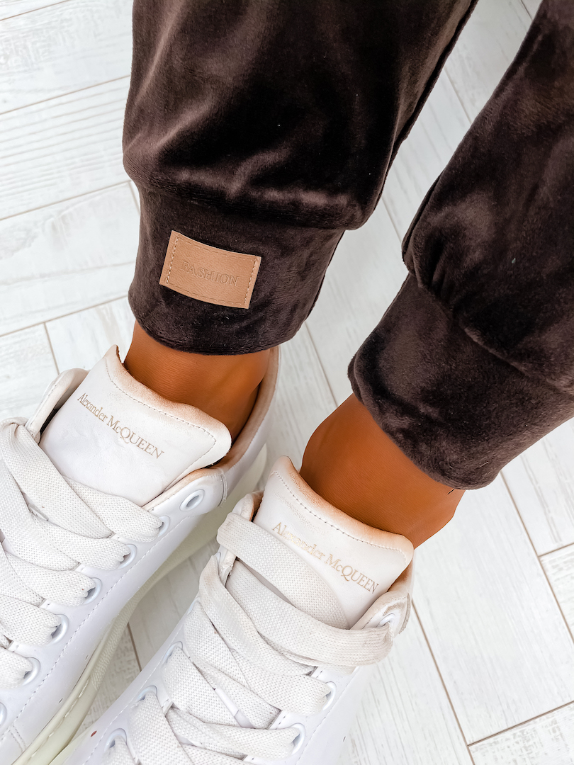 A felhasználók véleménye Csokoládé színű kétrészes velúr női melegítő együttes Bolf 637