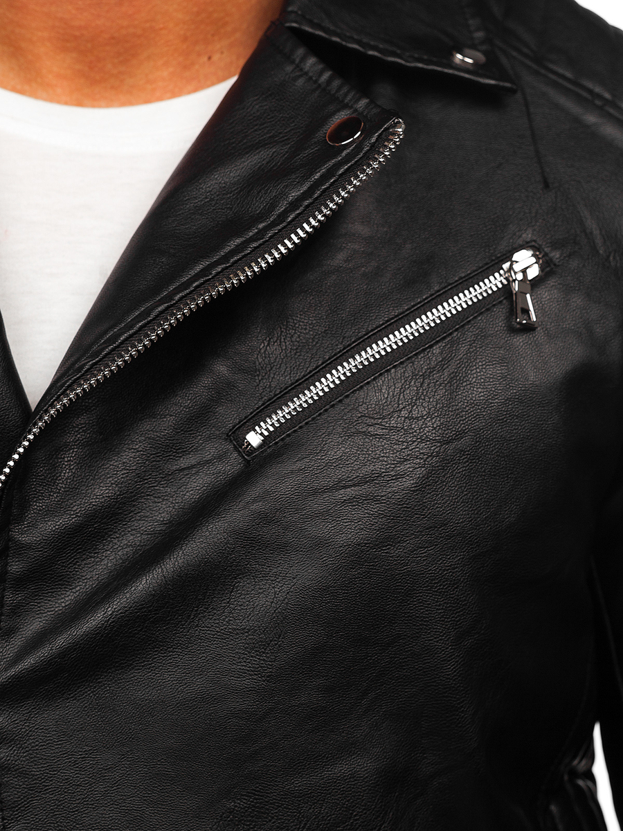 A felhasználók véleménye Fekete színű biker típusú férfi motoros bőrdzseki kapucnival Bolf 11Z8005