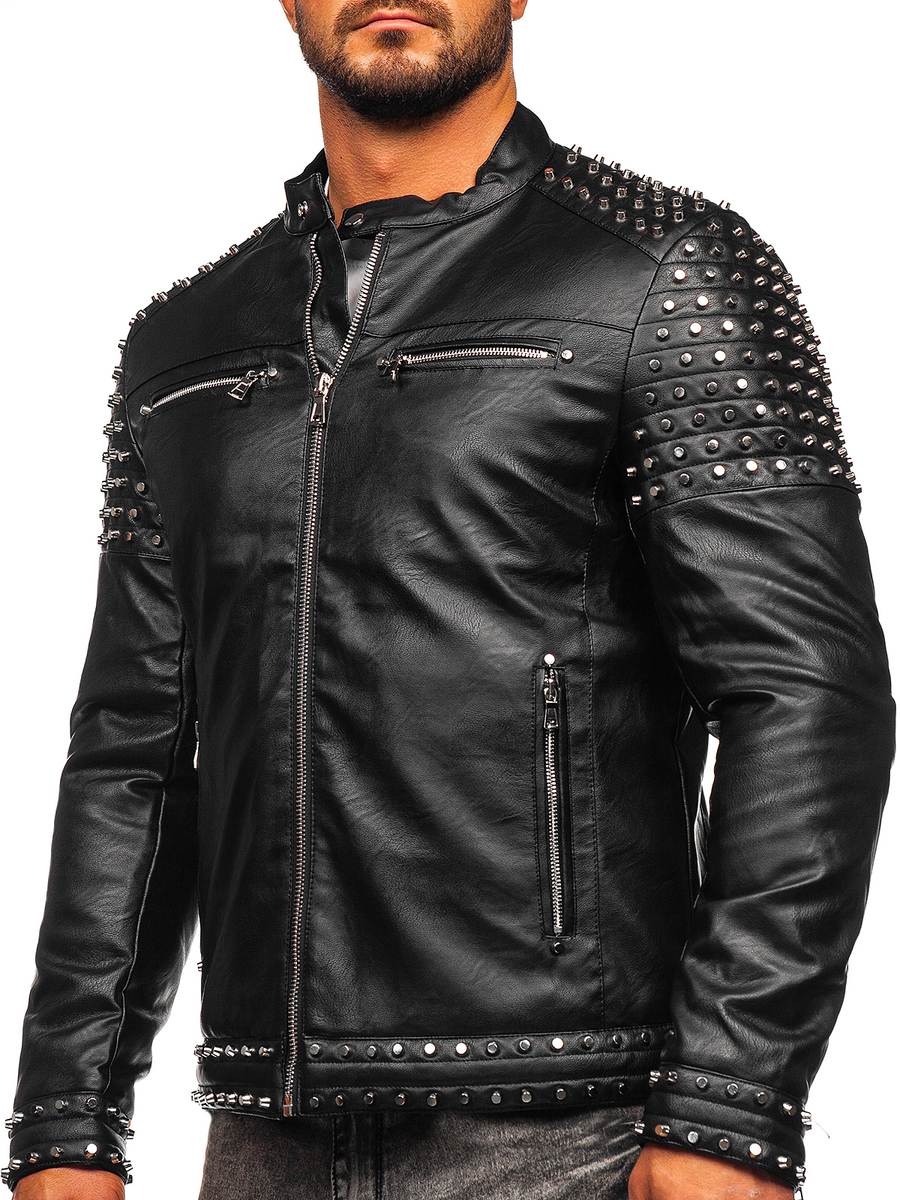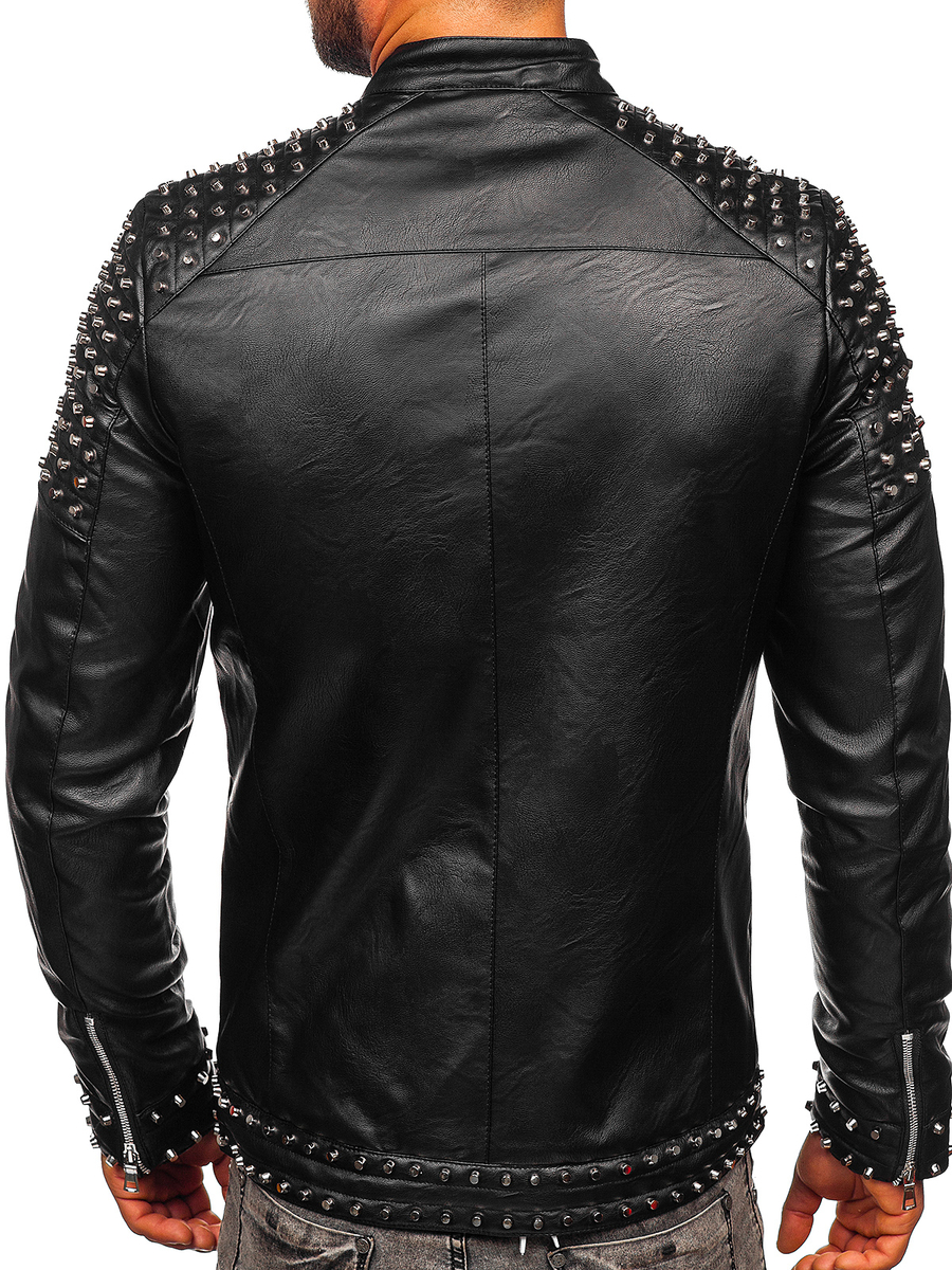 A felhasználók véleménye Férfi bőrdzseki szegecsekkel fekete színben Bolf 11Z8007