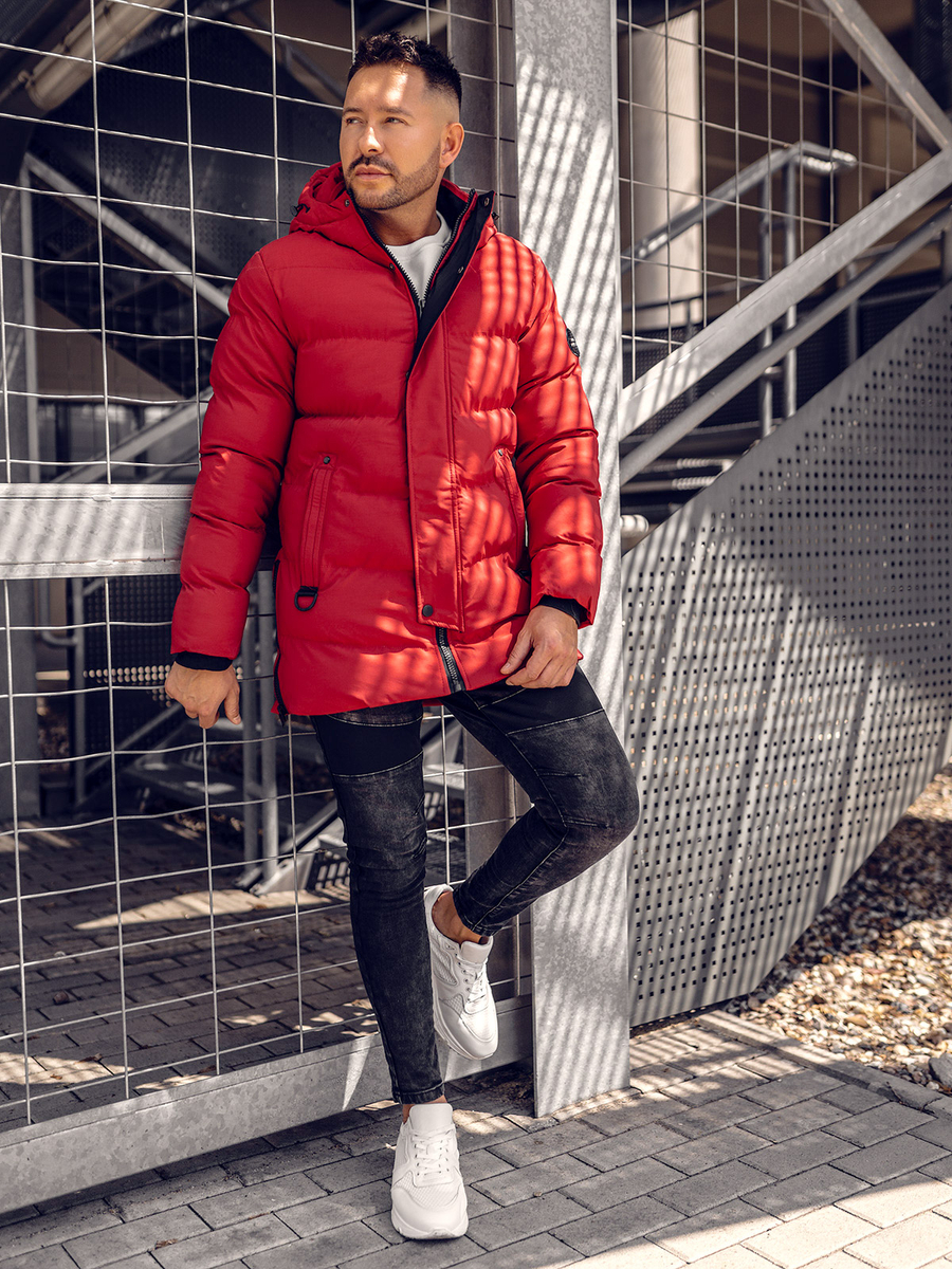 Piros színű, steppelt, téli férfi parka kabát -Bolf 7330- melegen tart a hidegebb napokon is. Négy kifinomult színben kapható. Parka típusú kabát, cipzározható és patentos. Kétrétegű, zsinórral állítható kapucnival, álló típusú gallérral. Két külső patentos zsebbel és egy belső gombolható zsebbel. A kabát ujjai belülről passzésak, ennek köszönhetően a kabát jól idomul az alakhoz. Az anyag rendkívül kellemes tapintású, ami kényelmet biztosít viselés közben. A dekoratív hátsó zárak és a hosszított hátsó rész különlegessé teszik. A hétköznapokon viseld hosszú ujjú felsővel és farmerral.