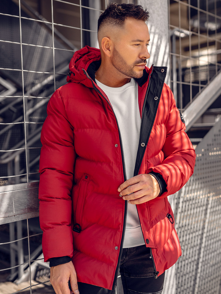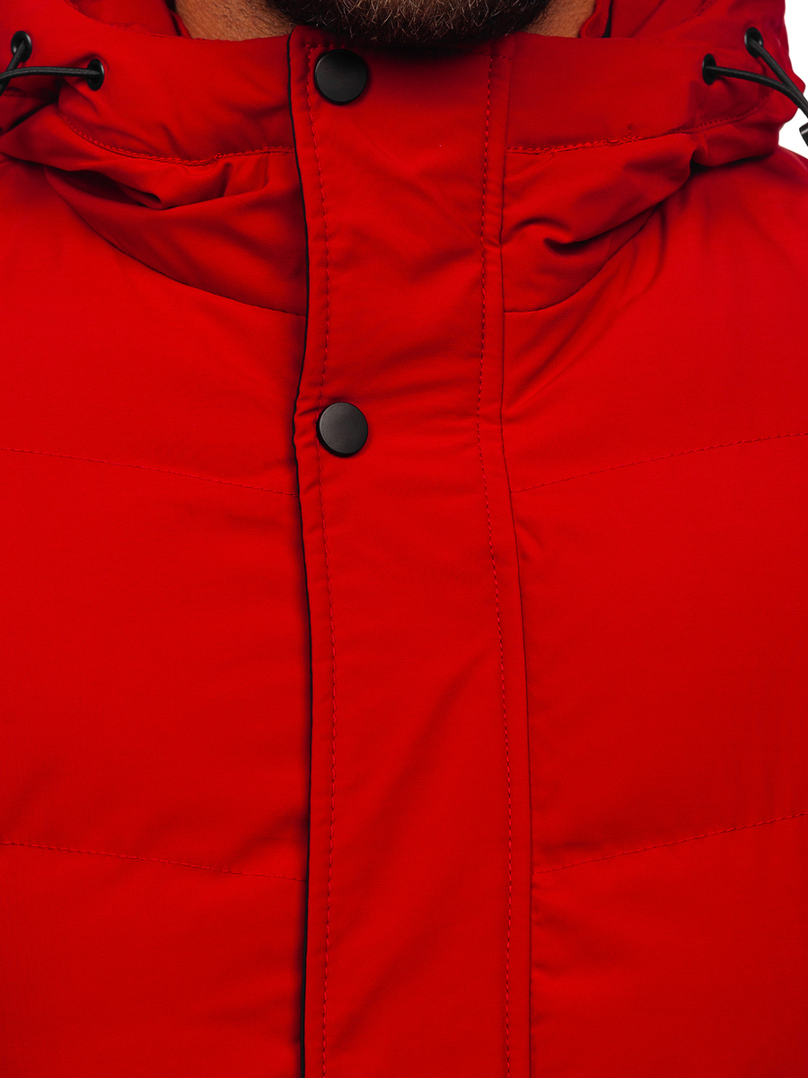 A felhasználók véleménye Steppelt téli férfi parka dzseki piros színben Bolf 7330