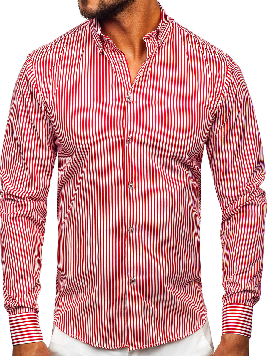 A felhasználók véleménye Hosszú ujjú csíkos férfiing piros színben Bolf 22731