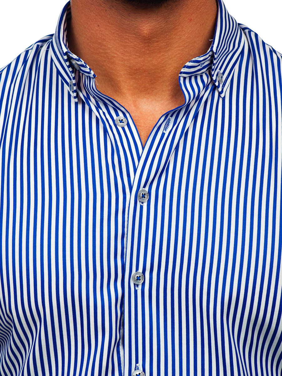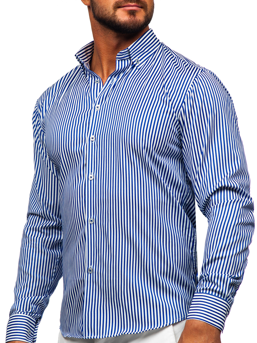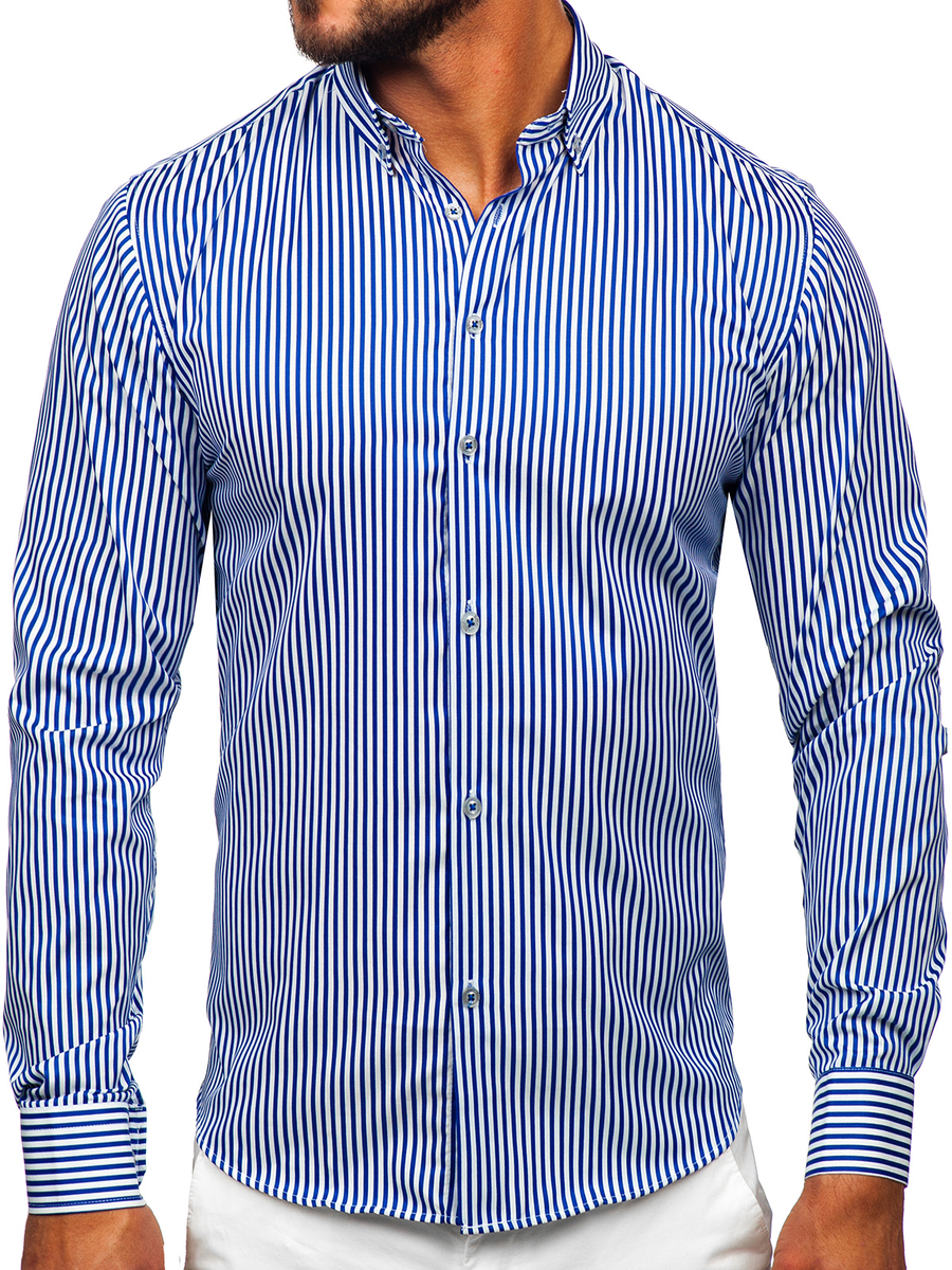 Csíkos, hosszú ujjú férfiing -Bolf 22731- minden férfi ruhásszekrényének kötelező darabja. Gombolható, állítható mandzsettával. 80%-ban pamutból és 20%-ban poliészterből készült, ennek köszönhetően rendkívül kellemes tapintású és kényelmes. Fantasztikusan karcsúsítja az alakot és kiemeli a vállakat. Ez az elegáns ing alkalmas hivatalos találkozókra, ahol fantasztikusan mutat zakóval, de hétköznapibb stílusokban is beválik, akár egy randevún vagy egy születésnapi bulin. Tizenegy féle színben elérhető.