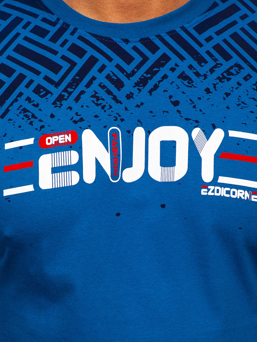 A felhasználók véleménye Mintás kék színű férfi pamutpóló Bolf 14720