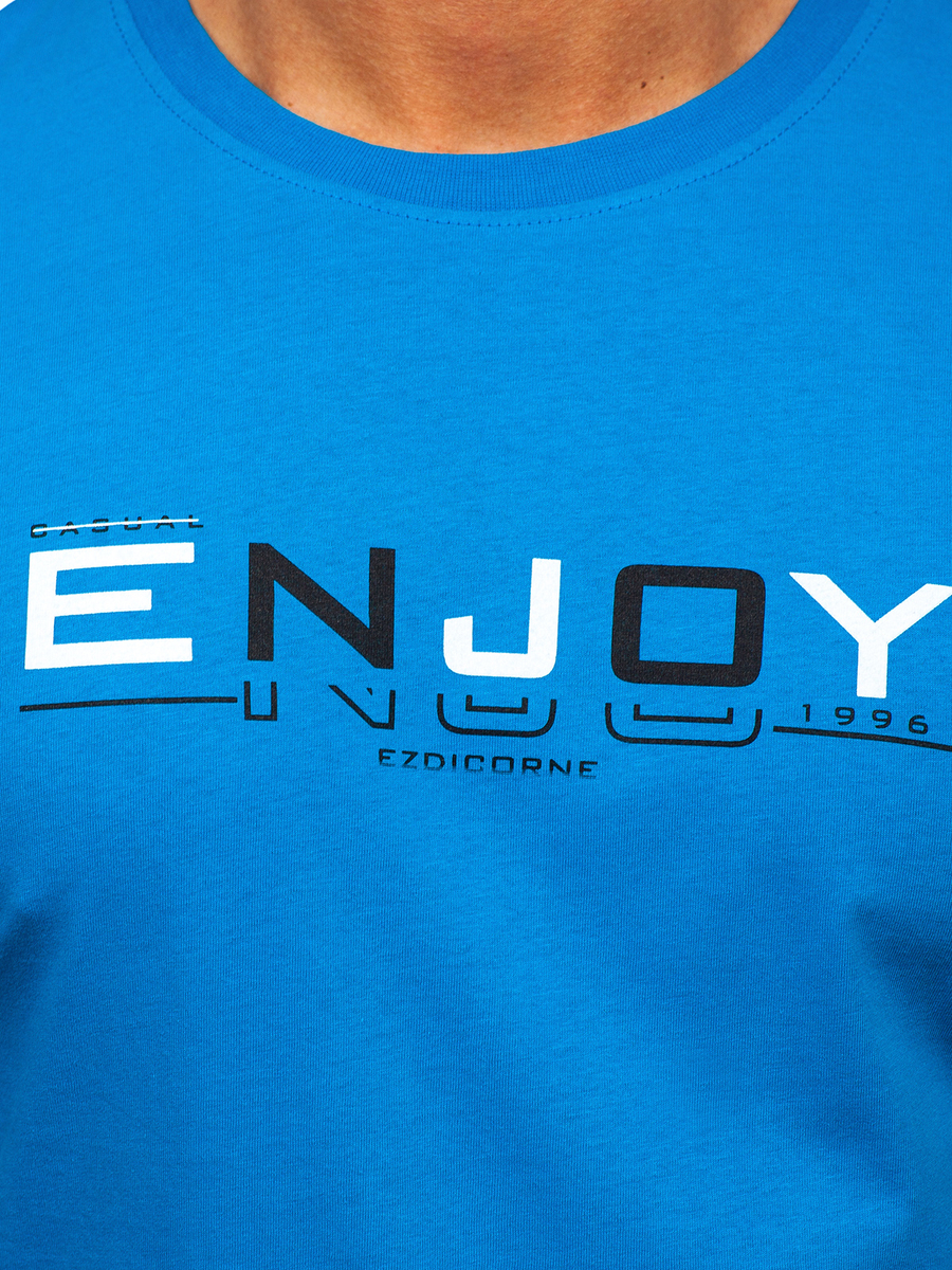 A felhasználók véleménye Égszínkék színű férfi pamut póló mintával Bolf 14739