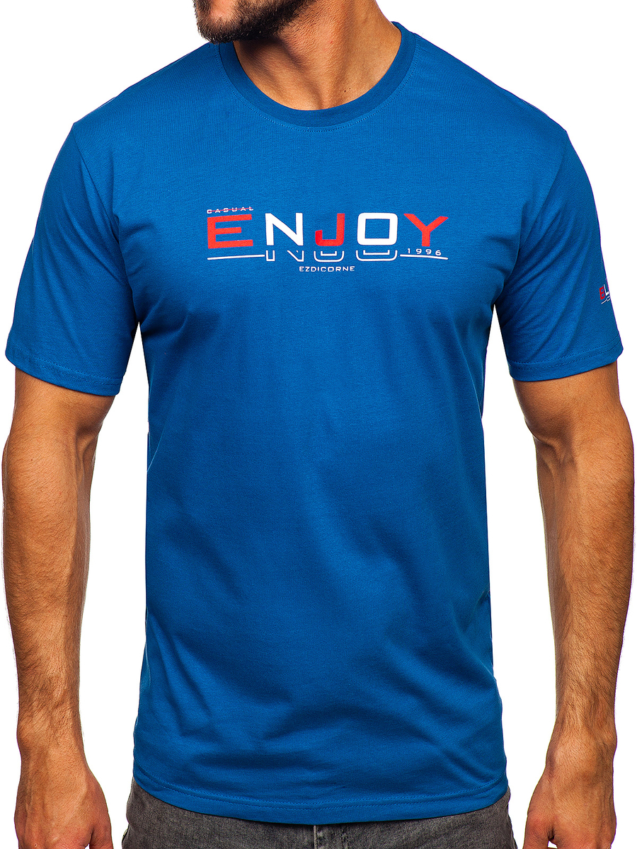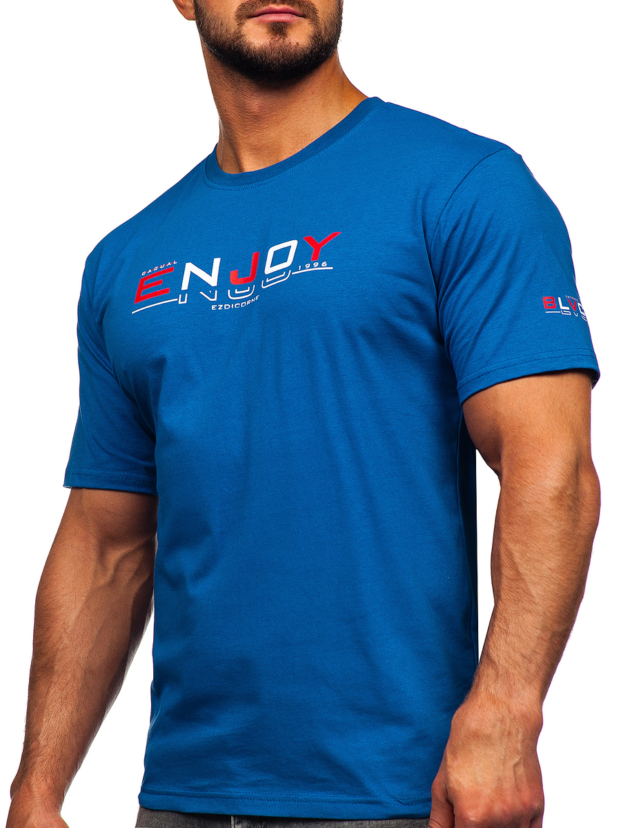 A felhasználók véleménye Kék színű férfi pamut póló mintával Bolf 14739