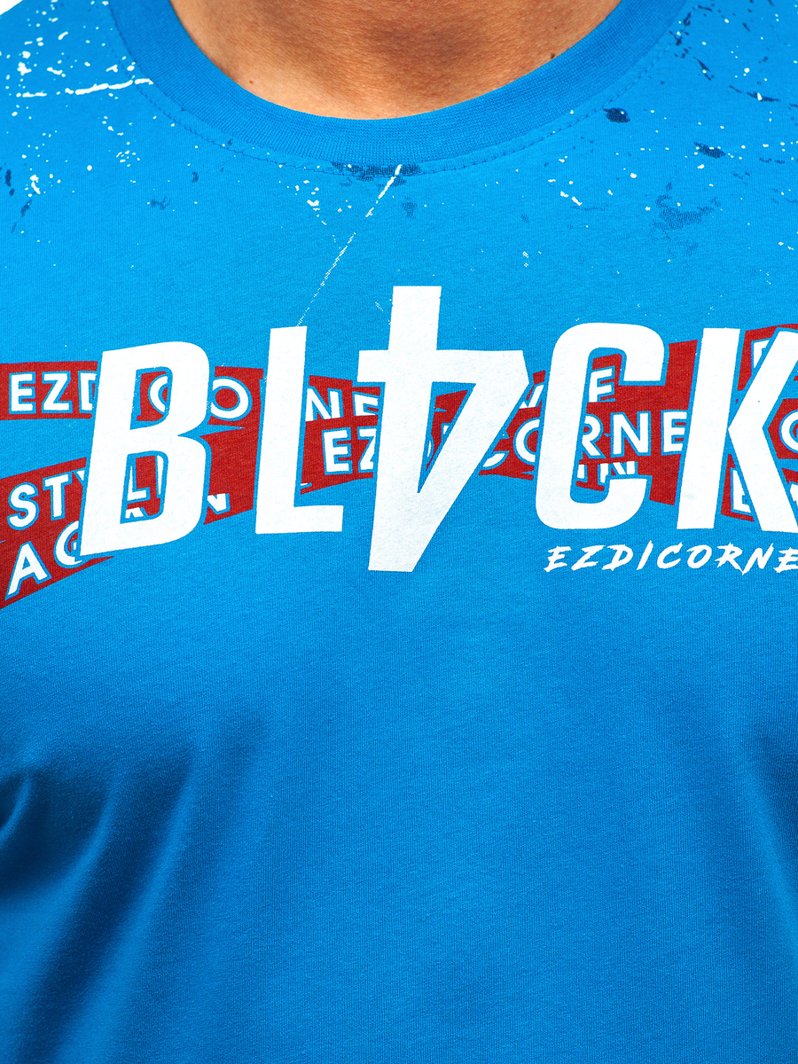 A felhasználók véleménye Égszínkék színű férfi pamut póló Bolf 14722