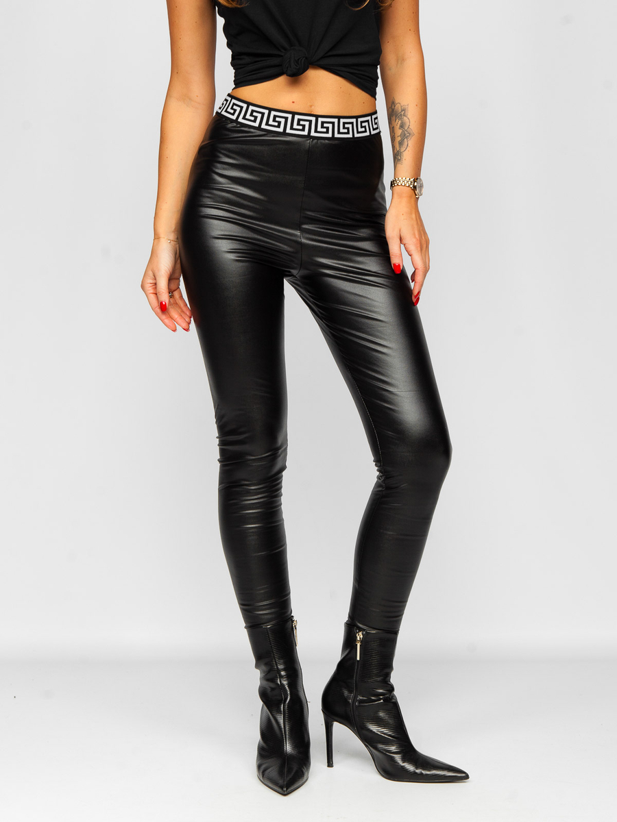 A felhasználók véleménye Bőrhatású női leggings fekete színben Bolf MY16572