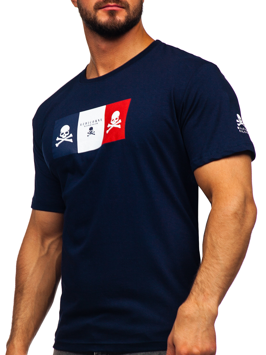 A felhasználók véleménye Gránátkék színű férfi pamut póló mintával Bolf 14784