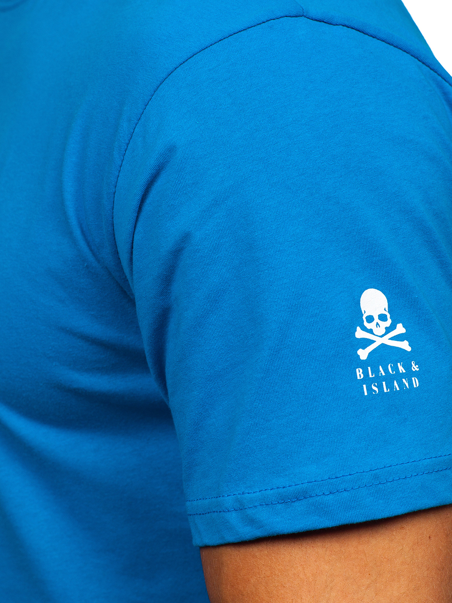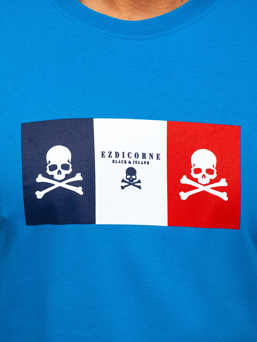 A felhasználók véleménye Égszínkék színű férfi pamut póló mintával Bolf 14784