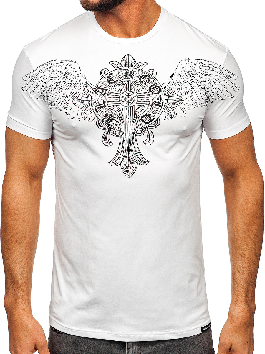 A felhasználók véleménye Fehér színű férfi póló strasszköves mintával Bolf MT3037
