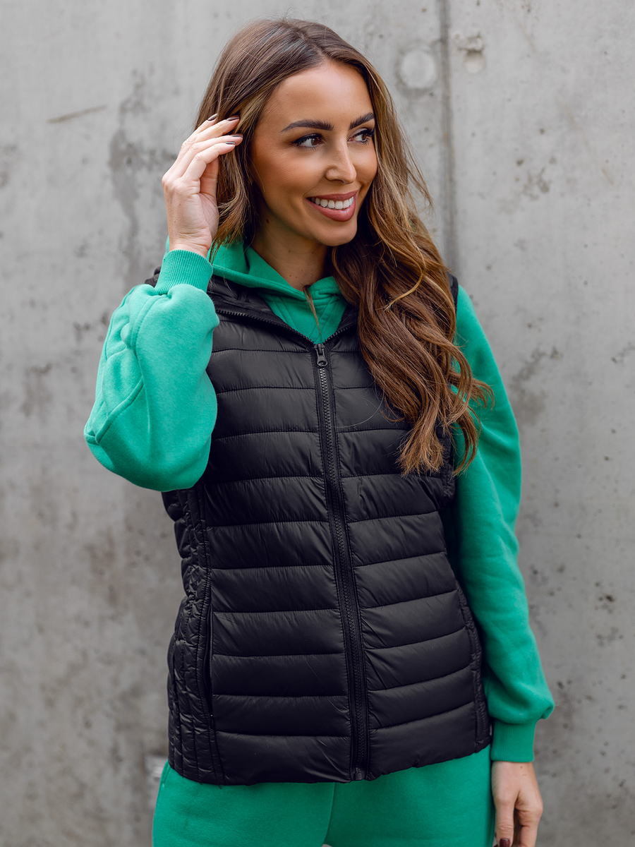 A felhasználók véleménye Fekete színű steppelt női mellény kapucnival Bolf 23039A