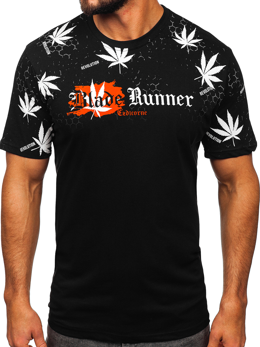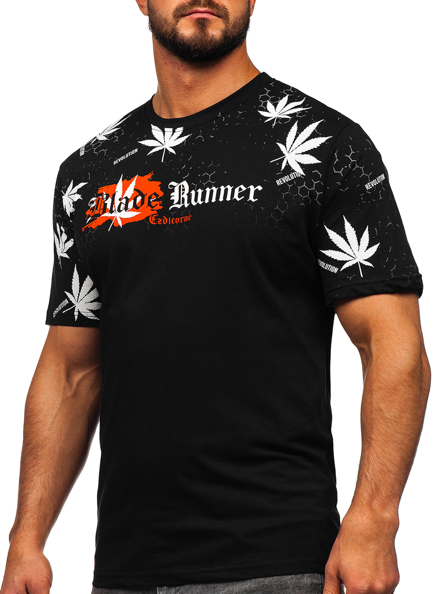 A felhasználók véleménye Férfi pamut póló mintával fekete színben Bolf 14744