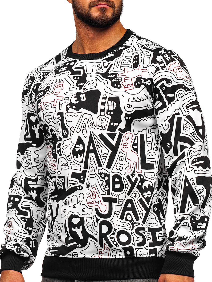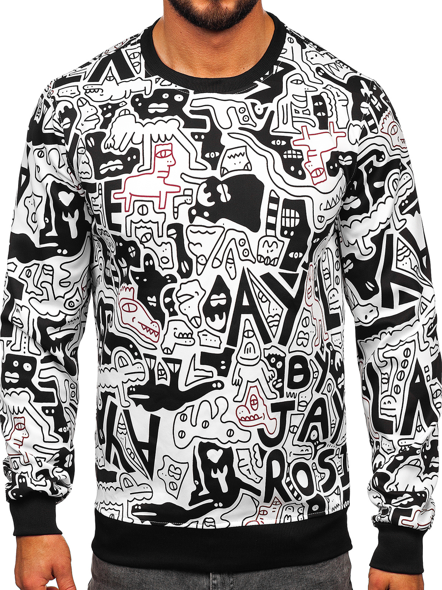 A felhasználók véleménye Mintás fekete-fehér színű férfi melegítőfelső kapucni nélkül Bolf 8B1133
