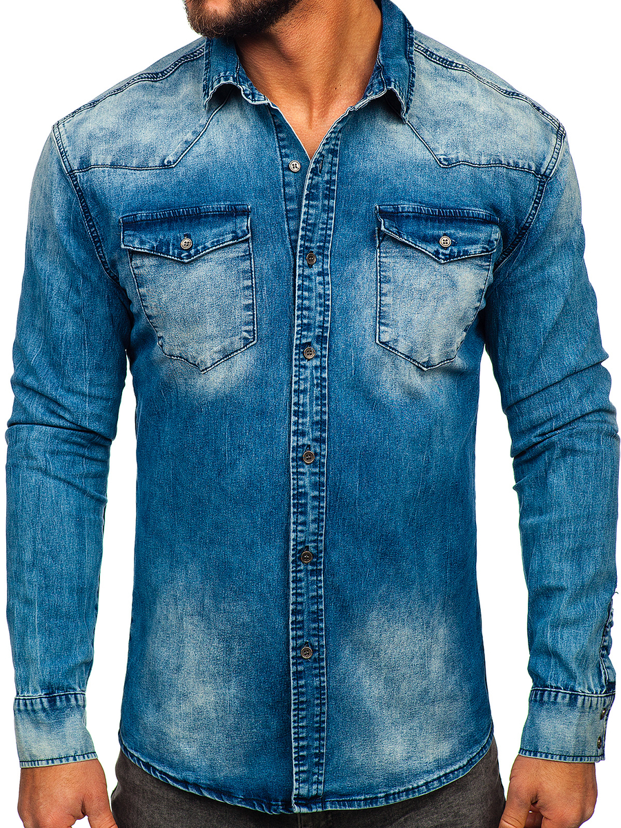 A felhasználók véleménye Hosszú ujjú férfi farmering gránátkék színben Bolf MC710BS