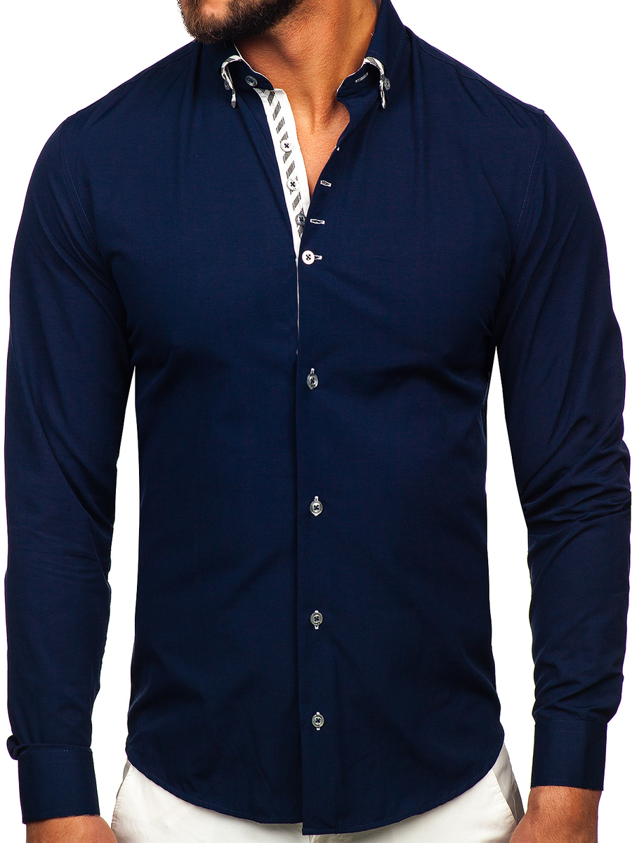 A felhasználók véleménye Gránátkék színű hosszú ujjú férfiing Bolf 3762
