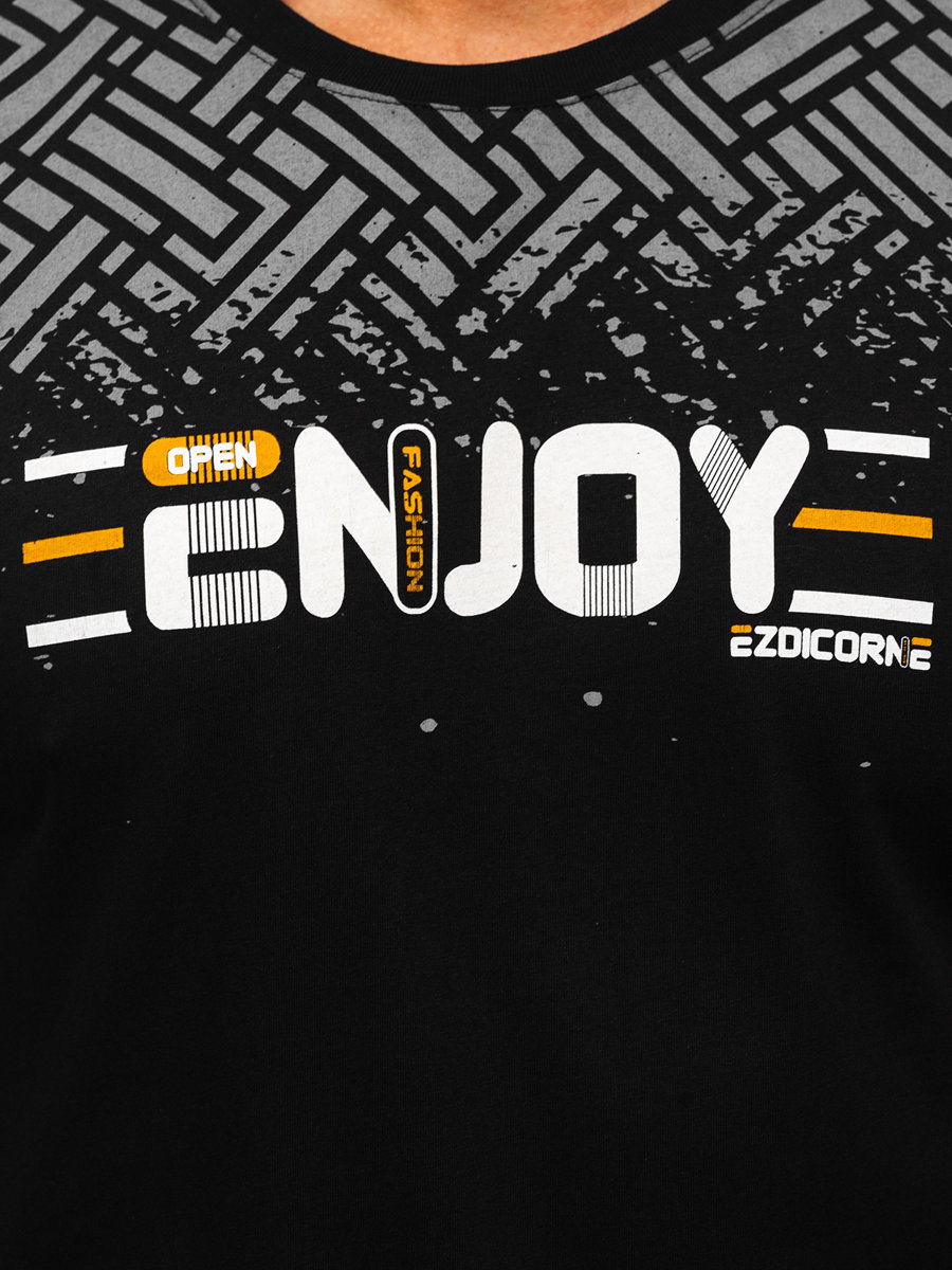 A felhasználók véleménye Mintás férfi pamut póló fekete színben Bolf 14720