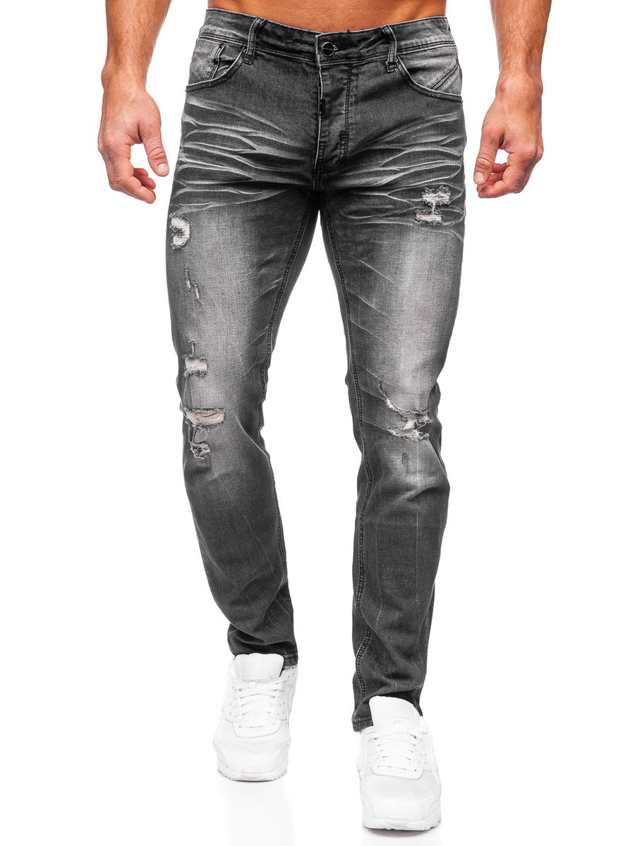 Fekete férfi farmernadrág Bolf MP0032N slim fit szabású, ideális választás azoknak férfiaknak, akik szeretik az erős stilizációkat és szeretik felhívni magukra a figyelmet. A nadrág fantasztikusan mutat párban flanel inggel és motoros dzsekivel. Nagyszerű hétköznapokra, baráti találkozóra vagy randira. Gombolható, két elülső- és két hátsó zsebbel rendelkezik. A koptatott hatás a lábszáron különleges hangulatot biztosít.