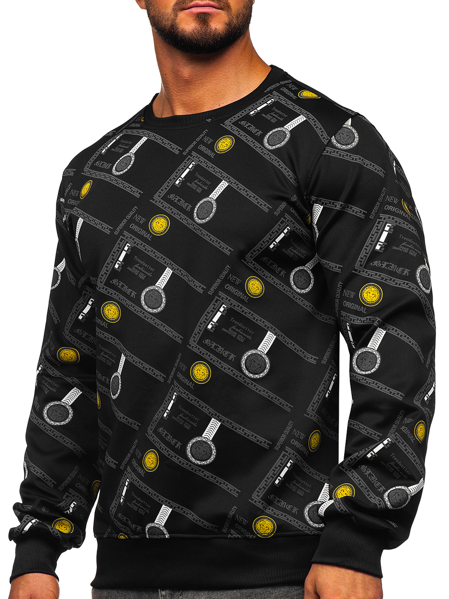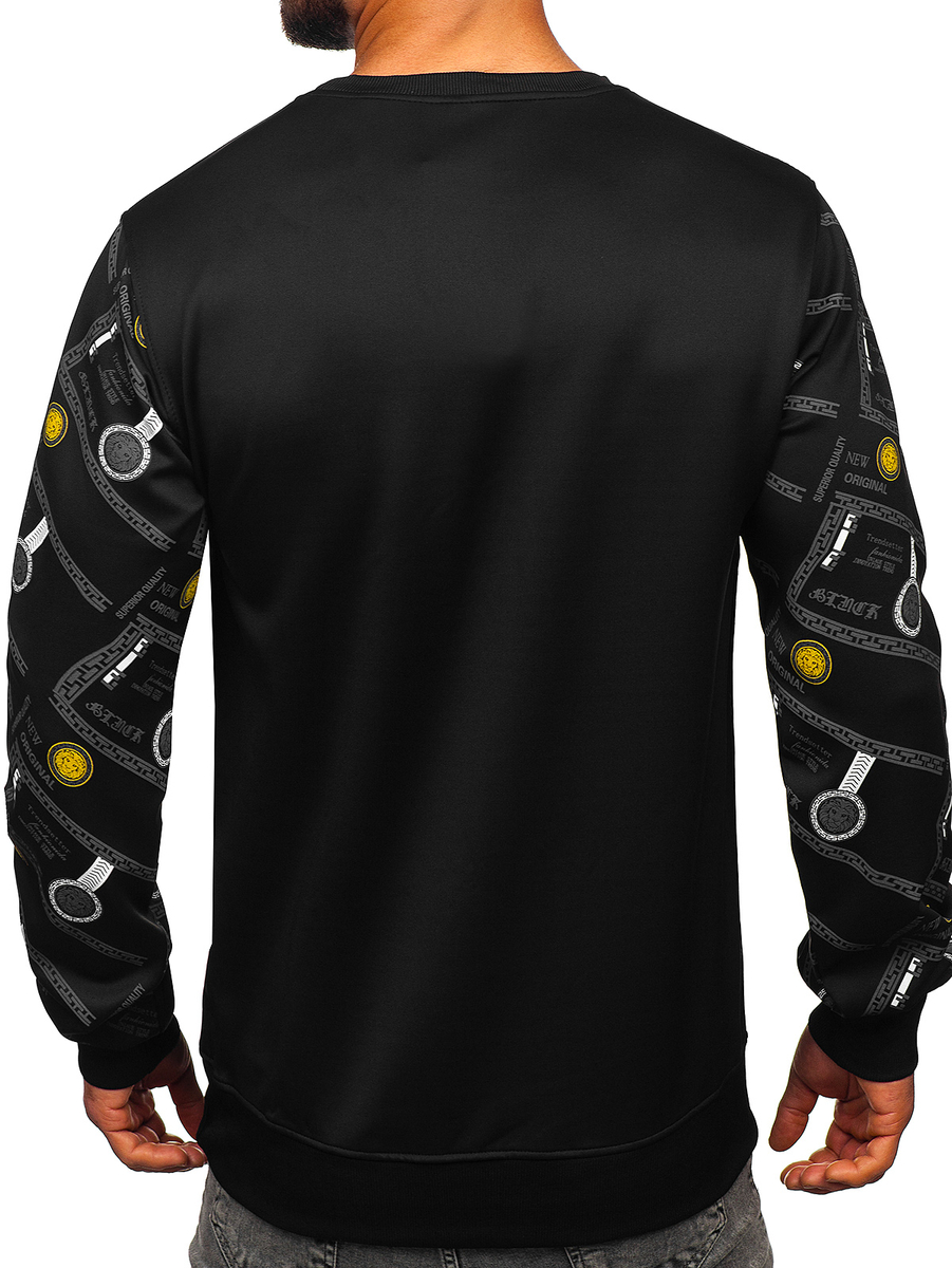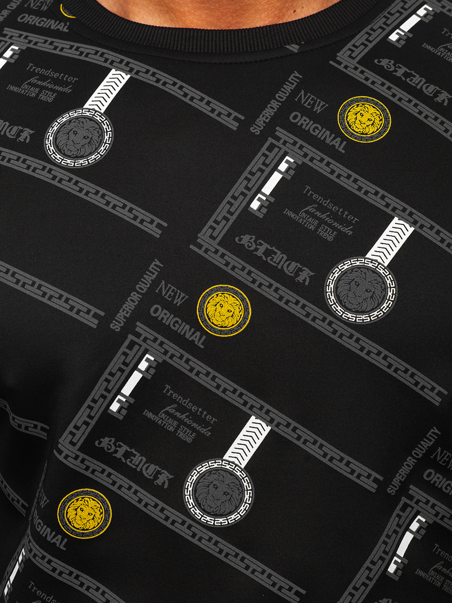Fekete színű férfi melegítőfelső kapucni nélkül -Bolf 8B1110- egy melegítőfelső, amelyet városi stilizációkhoz terveztek. Tökéletesen kiegészíti az öltözetet farmerral, bőrdzsekivel és sportcipővel. Belebújós, szűkítővel ellátva alul, a dekoltázson és az ujjakon, ami által jól illeszkedik az alakhoz. Az elején és az ujjain található egyedi nyomat jellegzetessé teszi a melegítőfelsőt. Puha, kellemes tapintású anyagból készült, mely nem akadályoz a mozgásban.