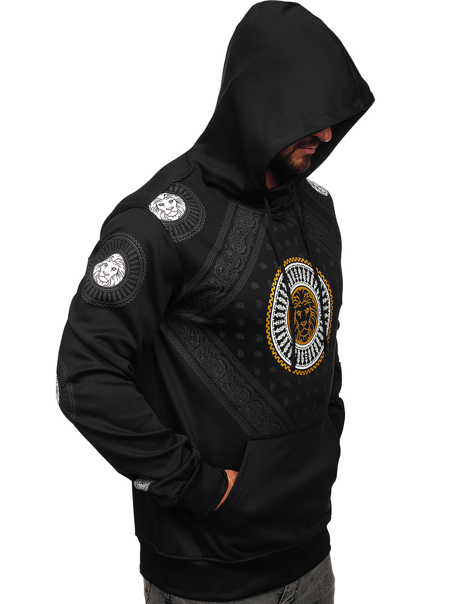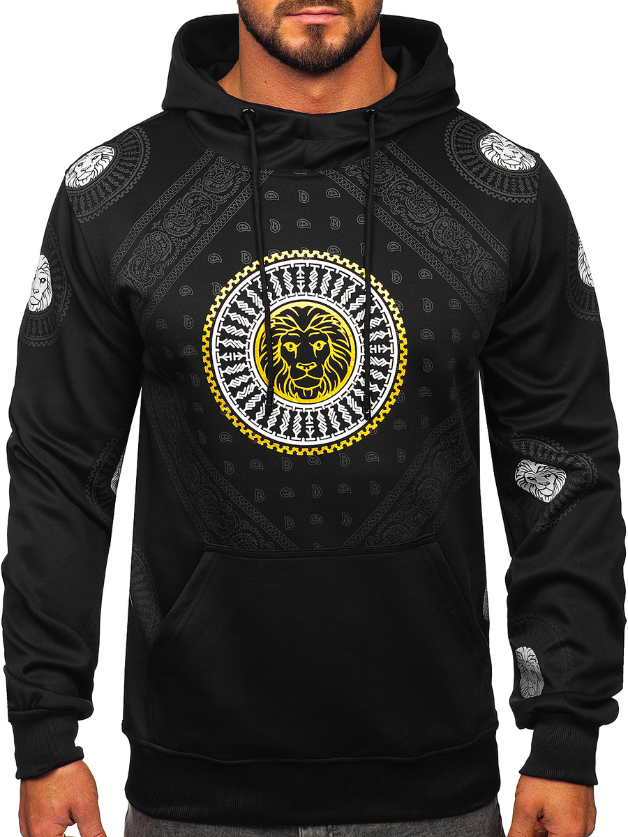 A felhasználók véleménye Fekete színű kapucnis kenguruzsebes férfi melegítőfelső mintával Bolf 8B990