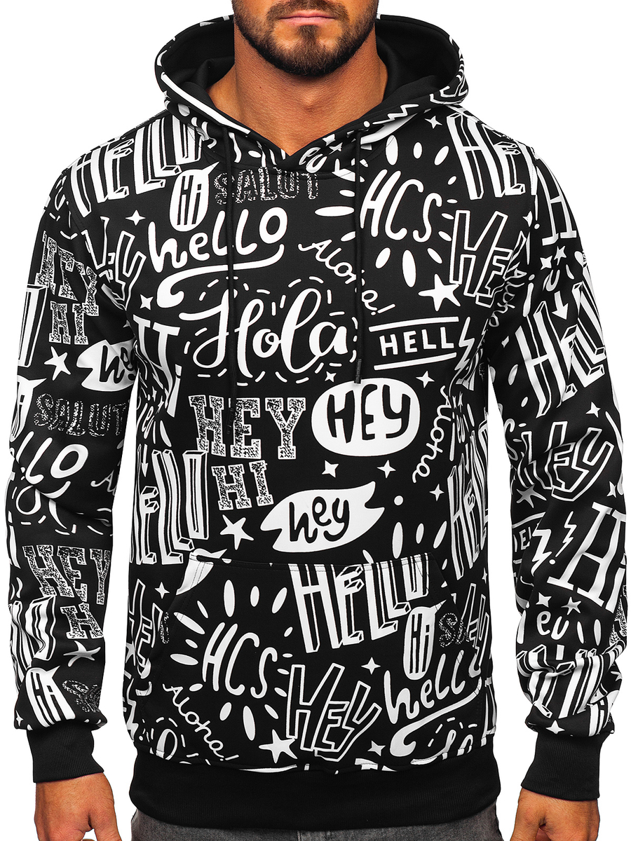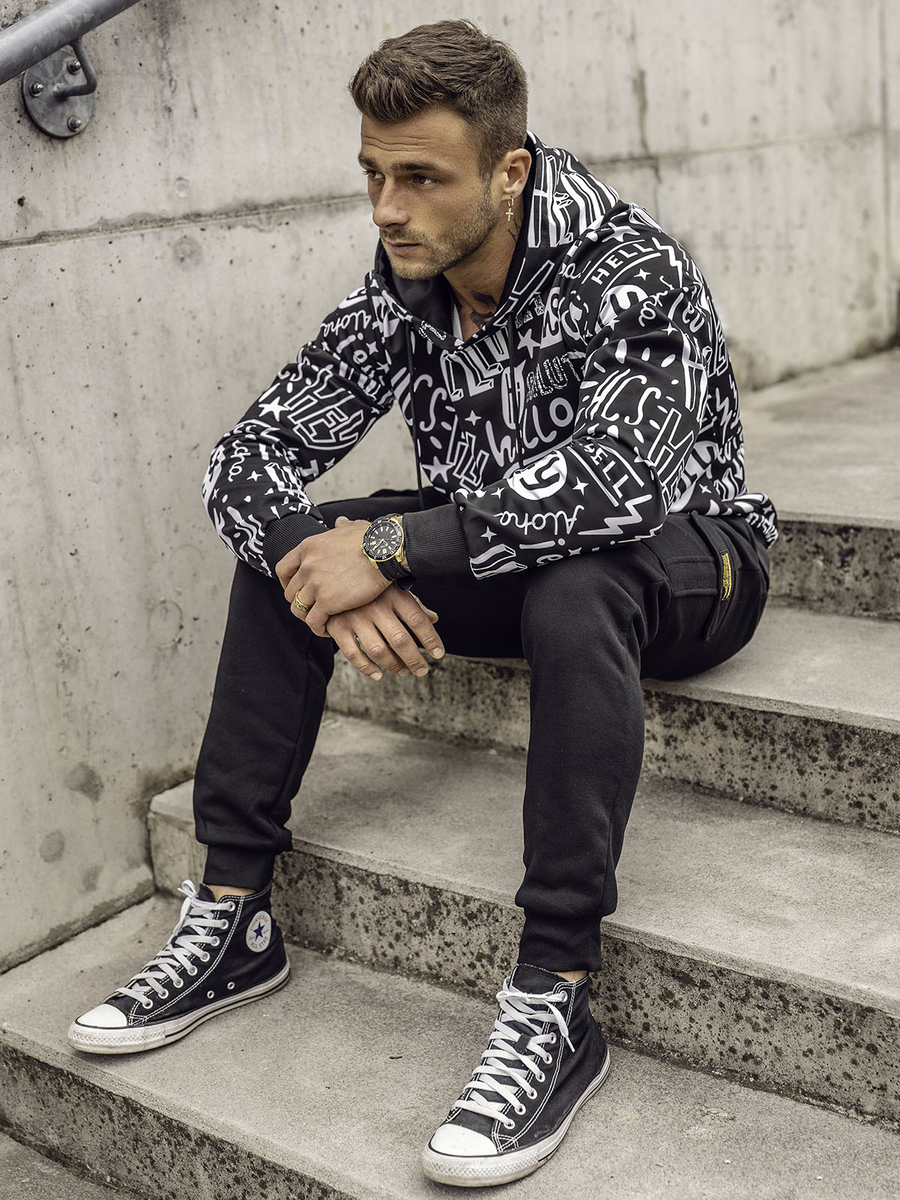 A felhasználók véleménye Fekete színű kapucnis kenguruzsebes férfi melegítőfelső mintával Bolf 8B1150