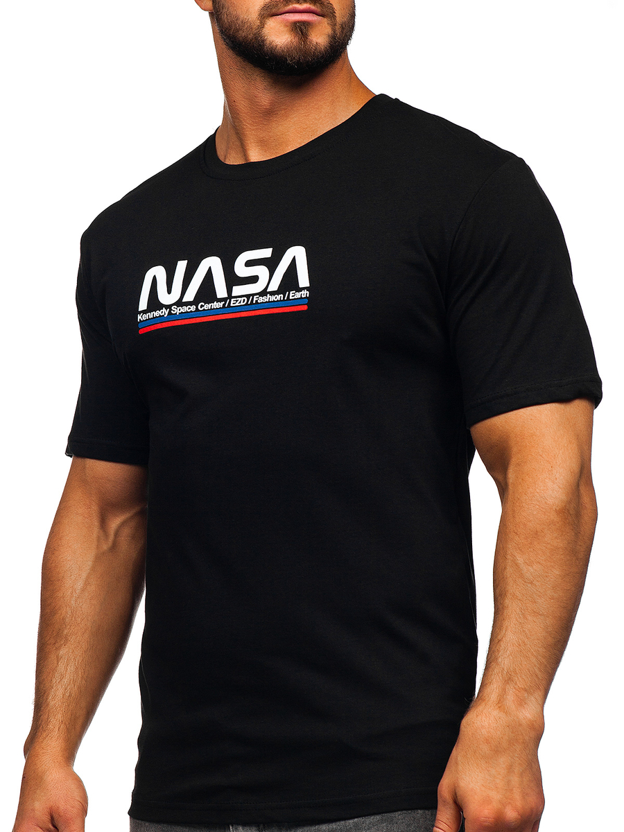 A felhasználók véleménye Mintás férfi pamut póló fekete színben Bolf 14749