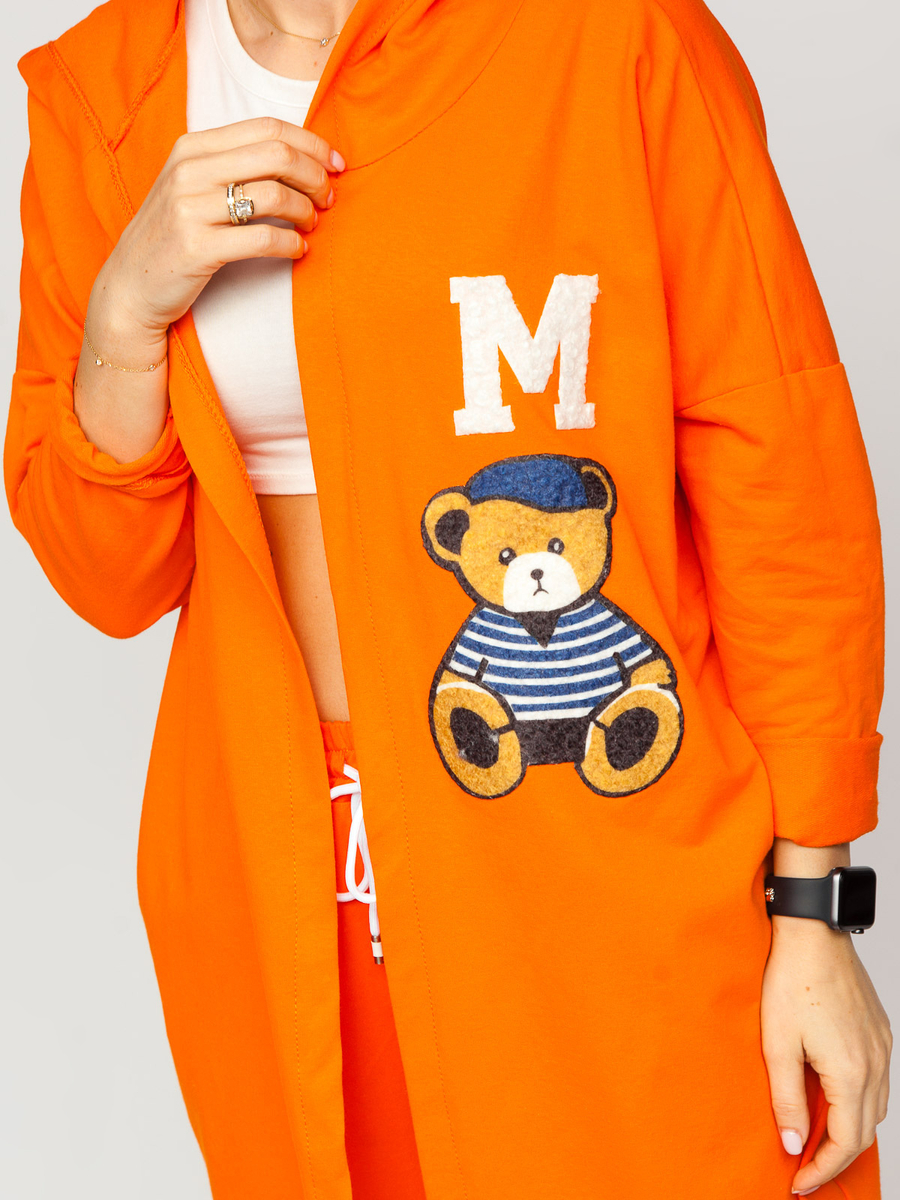 A felhasználók véleménye Narancssárga színű nyitható hosszú női melegítőfelső kapucnival és rátétekkel Bolf 81716